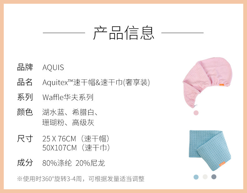[Aquis/xiu si si] Американская вафельная технология волокна быстро сухие полотенце для волос Супер сильное водопоглощение сухо