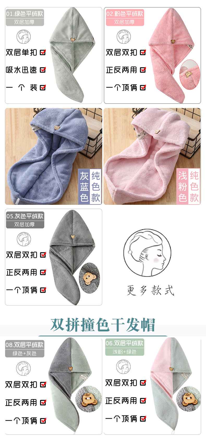 | Цвет: | 02#[Шляпа для волос] Одиночный верблюжь, 02#[сухая шляпа для волос] Одиночный розовый поросят, 02#[Шляпа для волос] Одиночный розовый ангел, 03#[сухая шляпа для волос] толстый двойной слой серой, 03#[сухая шляпа для волос] толстая двойная слоя светло -розовый, 03#[Шляпа с сухой волосами] толстый двойной слой зеленый+серый, 03#[сухая шляпа для волос] толстый двойной порошок+зеленый |