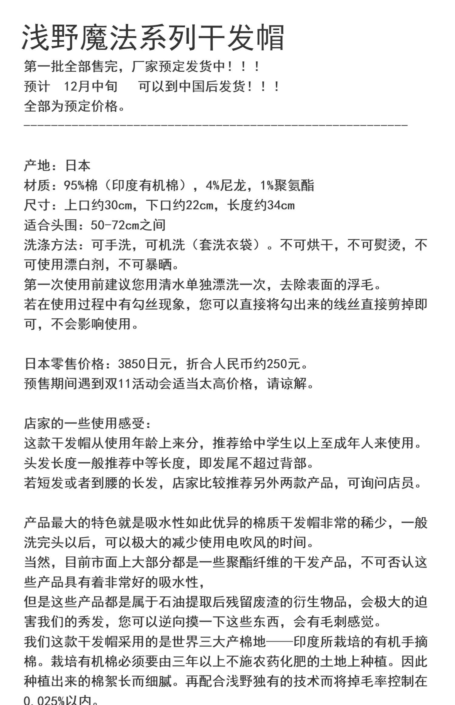 Япония -изготовленная воздушная -изготовленная мелкая волшебная серия сухой шляпы для волос мгновенно впитывает воду и вешайте веревку