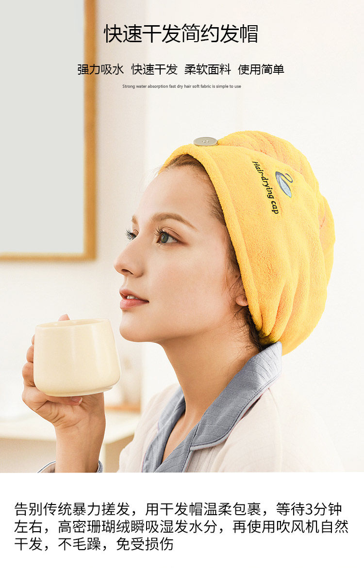居曼希 Быстросохнущее полотенце для волос, сухая быстросохнущая шапка, милый платок, шапочка для душа, хорошо впитывает воду, увеличенная толщина