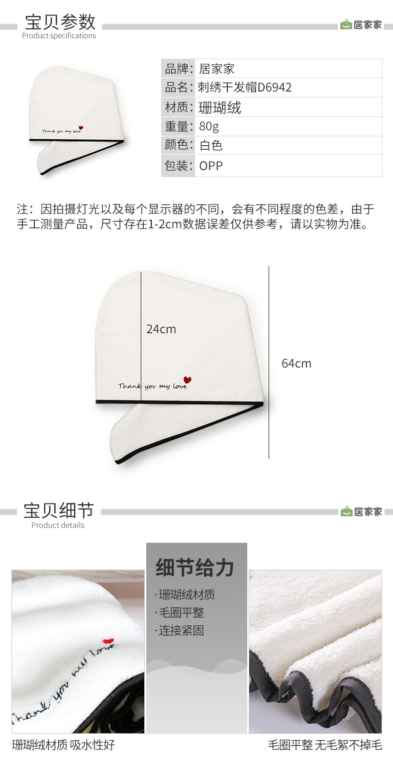 居家家 Коралловое бархатное быстрое быстросохнущее сухое полотенце для волос, быстросохнущий платок, с вышивкой, хорошо впитывает воду, увеличенная толщина