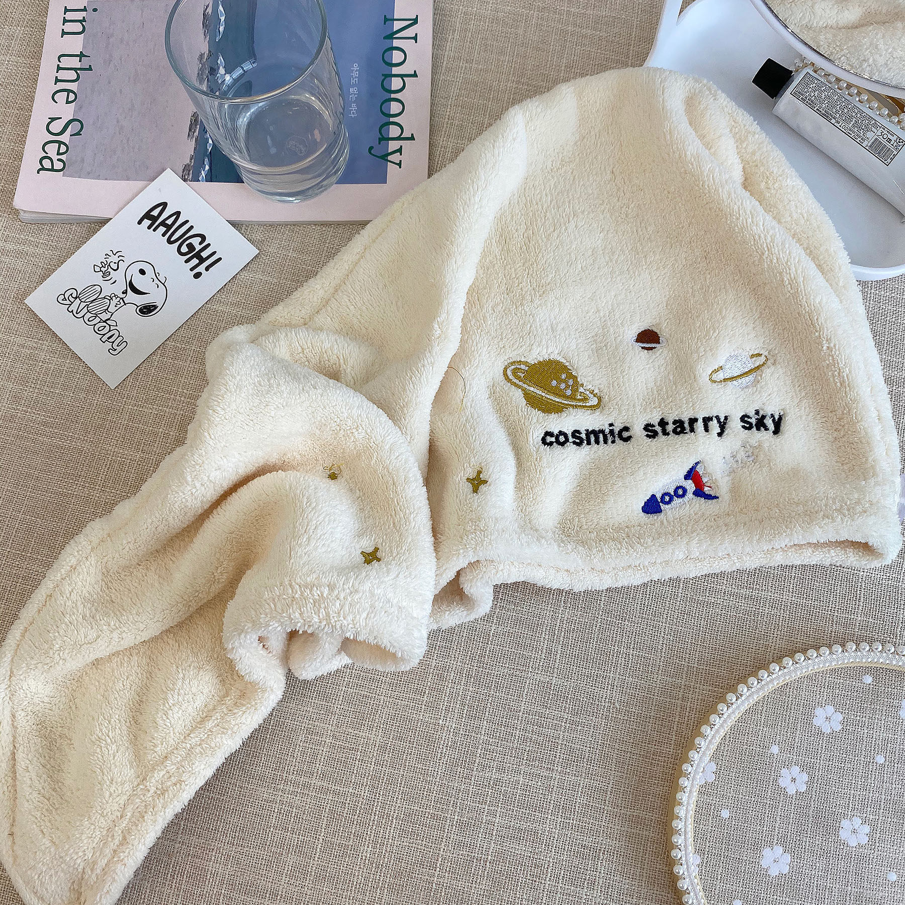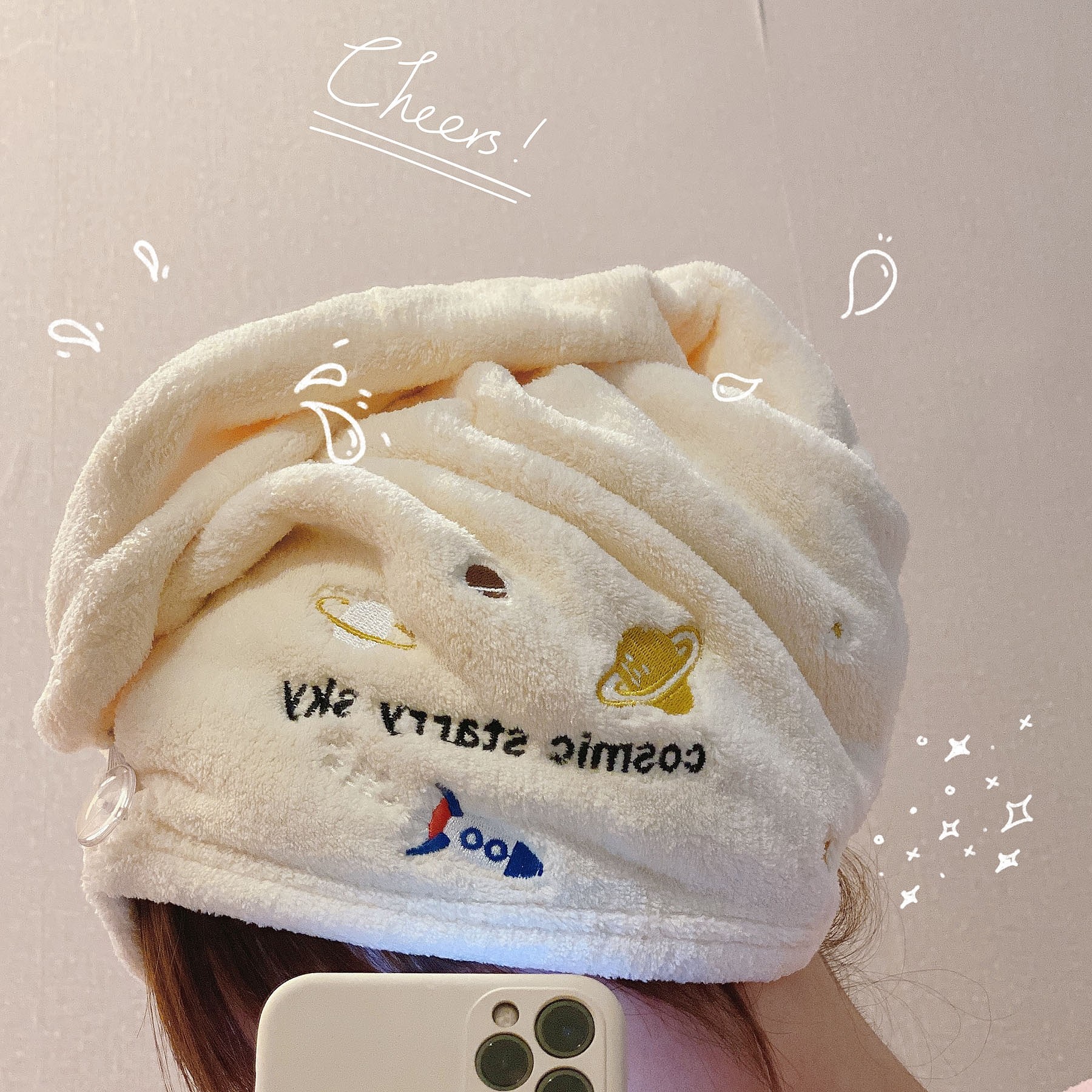 Милое коралловое полотенце для волос, сухая быстросохнущая шапочка для душа, с вышивкой, хорошо впитывает воду