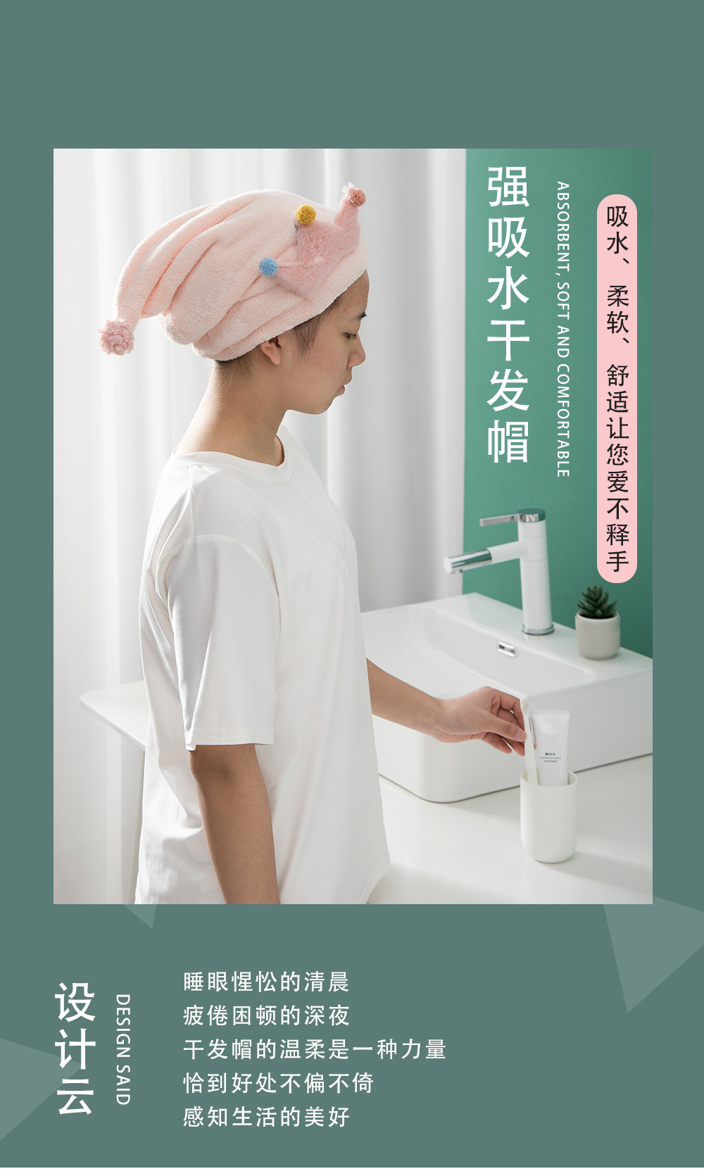 Полотенце для волос, быстросохнущий платок, мультяшная шапочка для душа, хорошо впитывает воду, увеличенная толщина, простой и элегантный дизайн