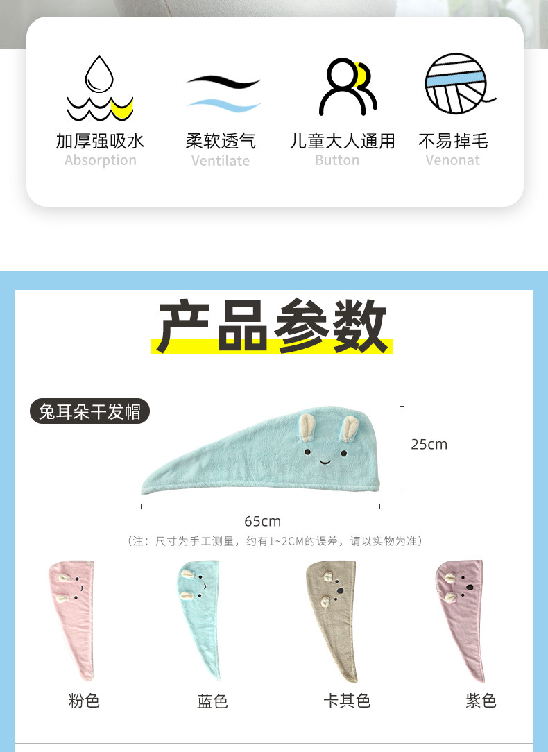 Быстросохнущее полотенце для волос, шапочка для душа, платок, милая шапка, хорошо впитывает воду, увеличенная толщина