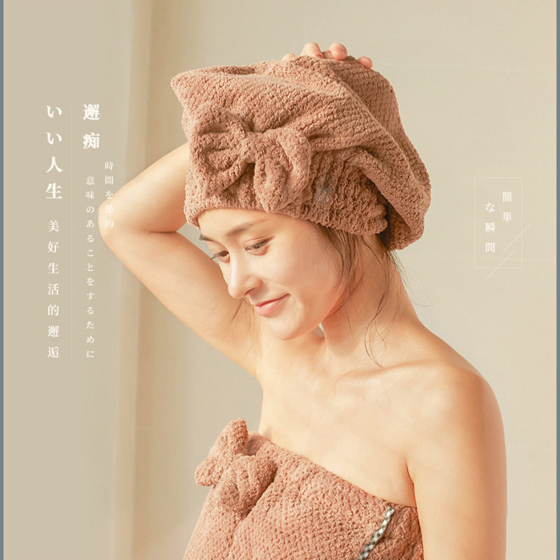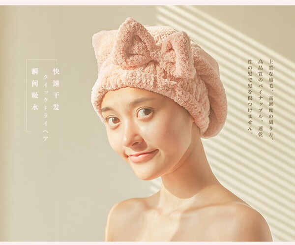 Японская милая коралловая шапочка для душа с бантиком, быстросохнущее полотенце для волос, хорошо впитывает воду