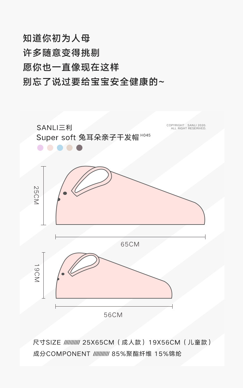 三利 Полотенце для волос, милая шапочка для душа, быстросохнущий детский сухой платок, хорошо впитывает воду