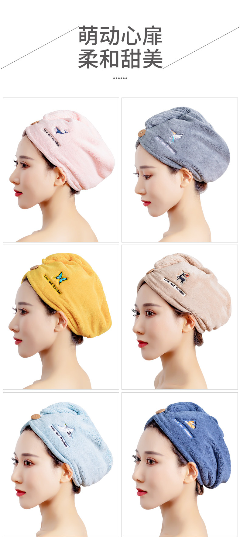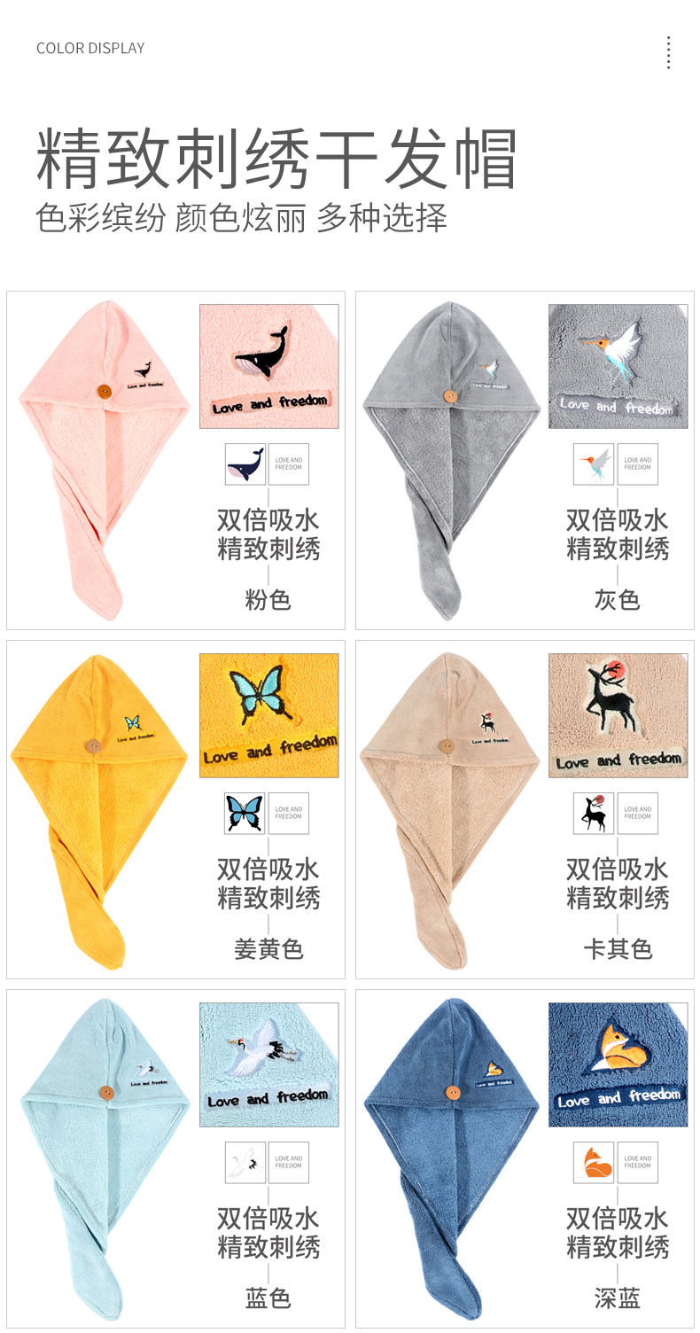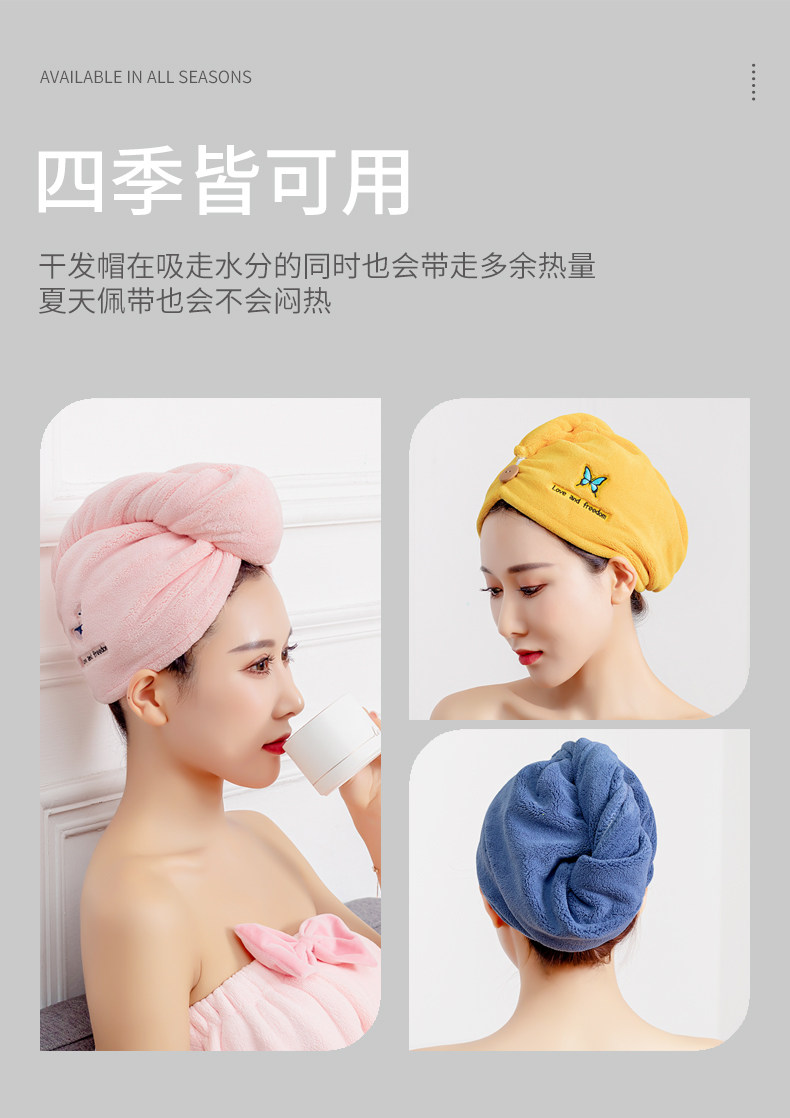 Полотенце для волос, быстросохнущая шапочка для душа, милый платок, с вышивкой, увеличенная толщина, хорошо впитывает воду