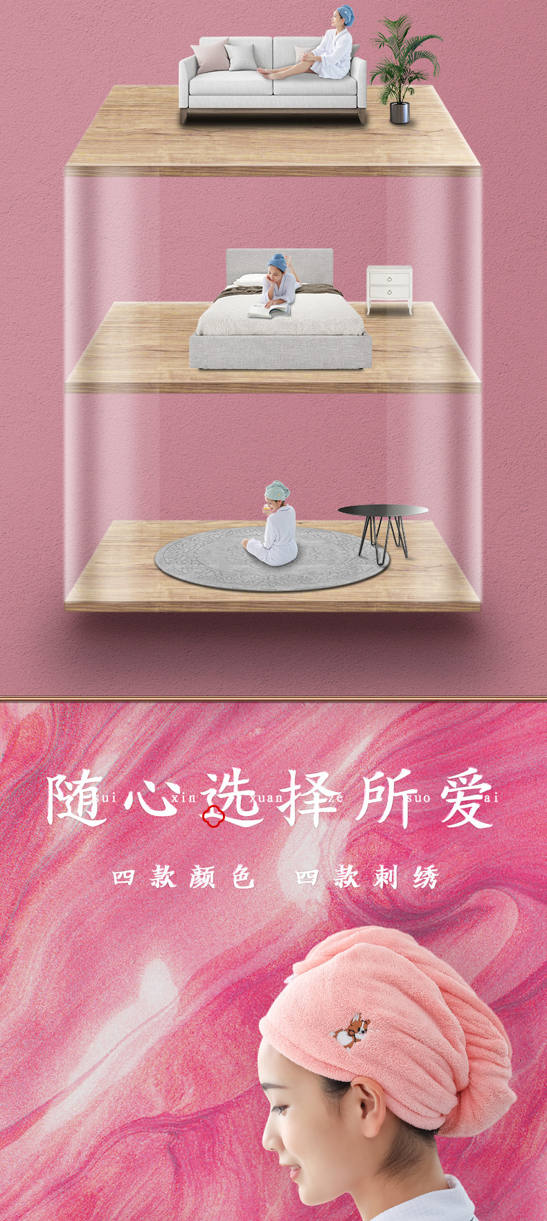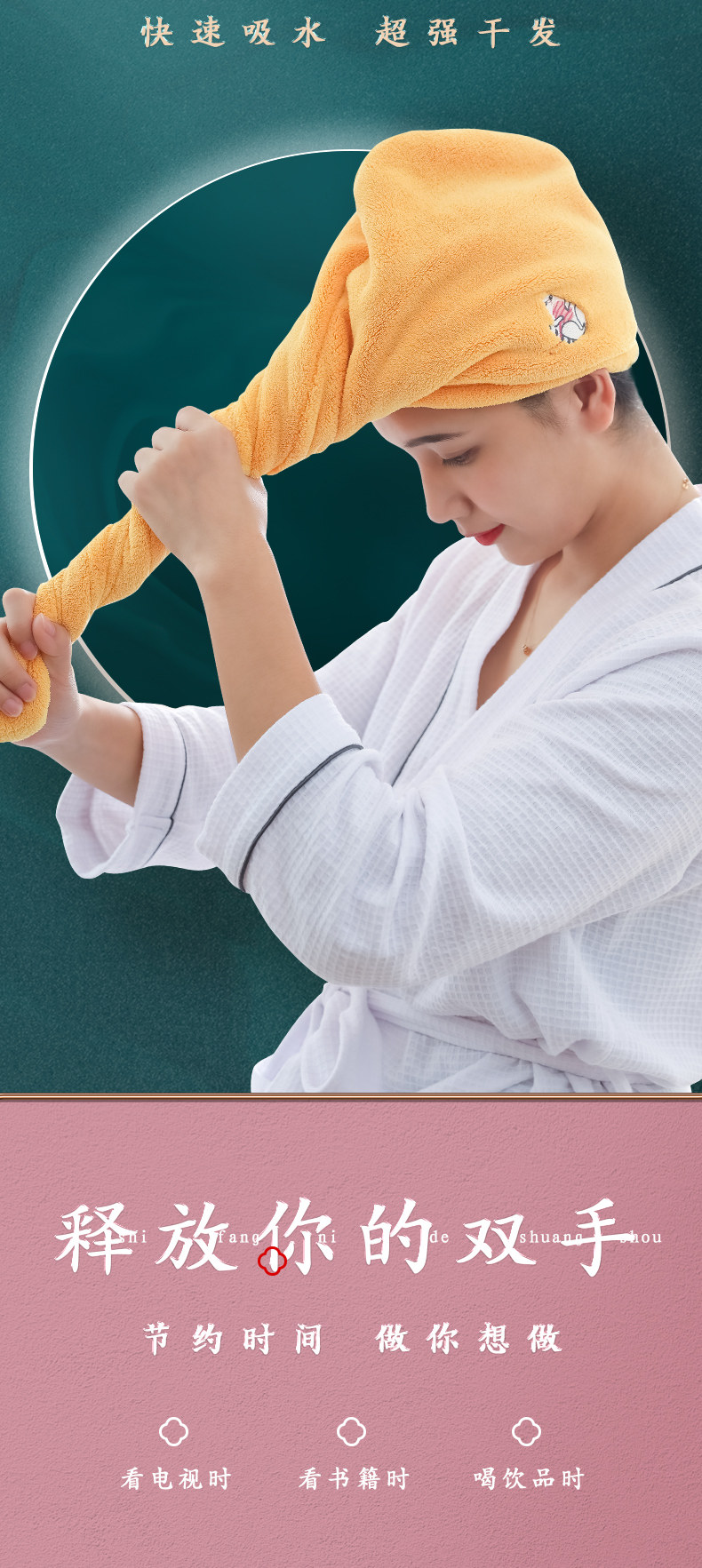 Платок, шапочка для душа, полотенце для волос, милая быстросохнущая шапка, увеличенная толщина, хорошо впитывает воду
