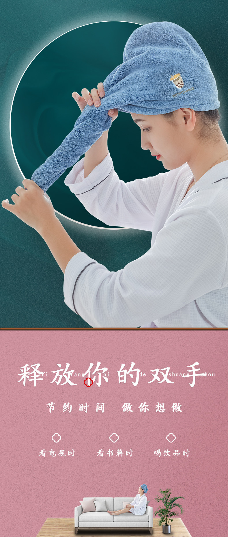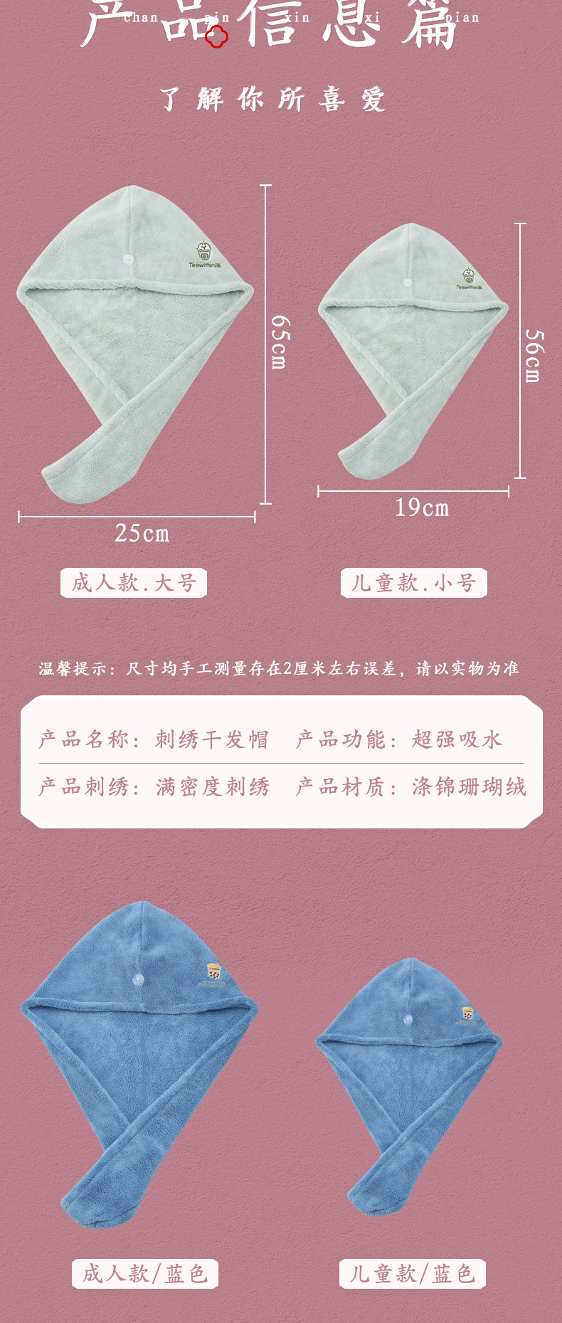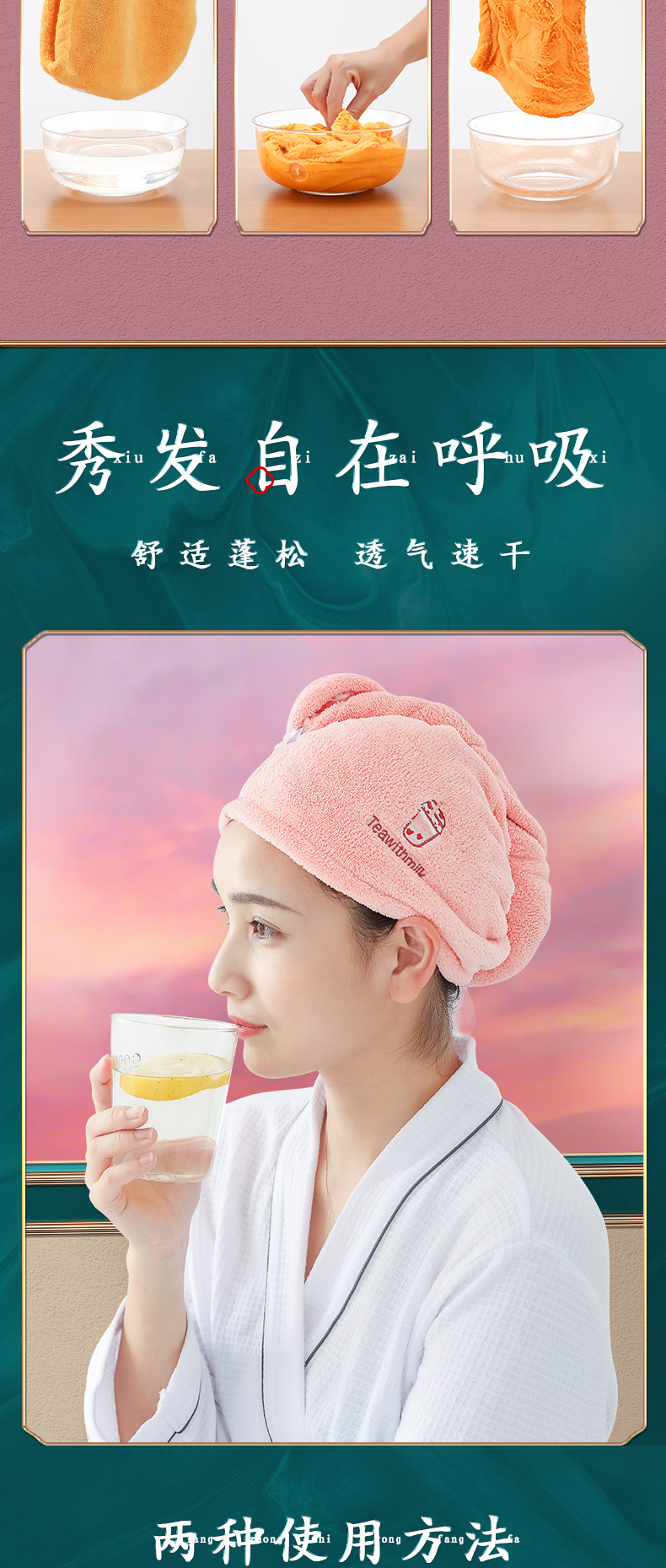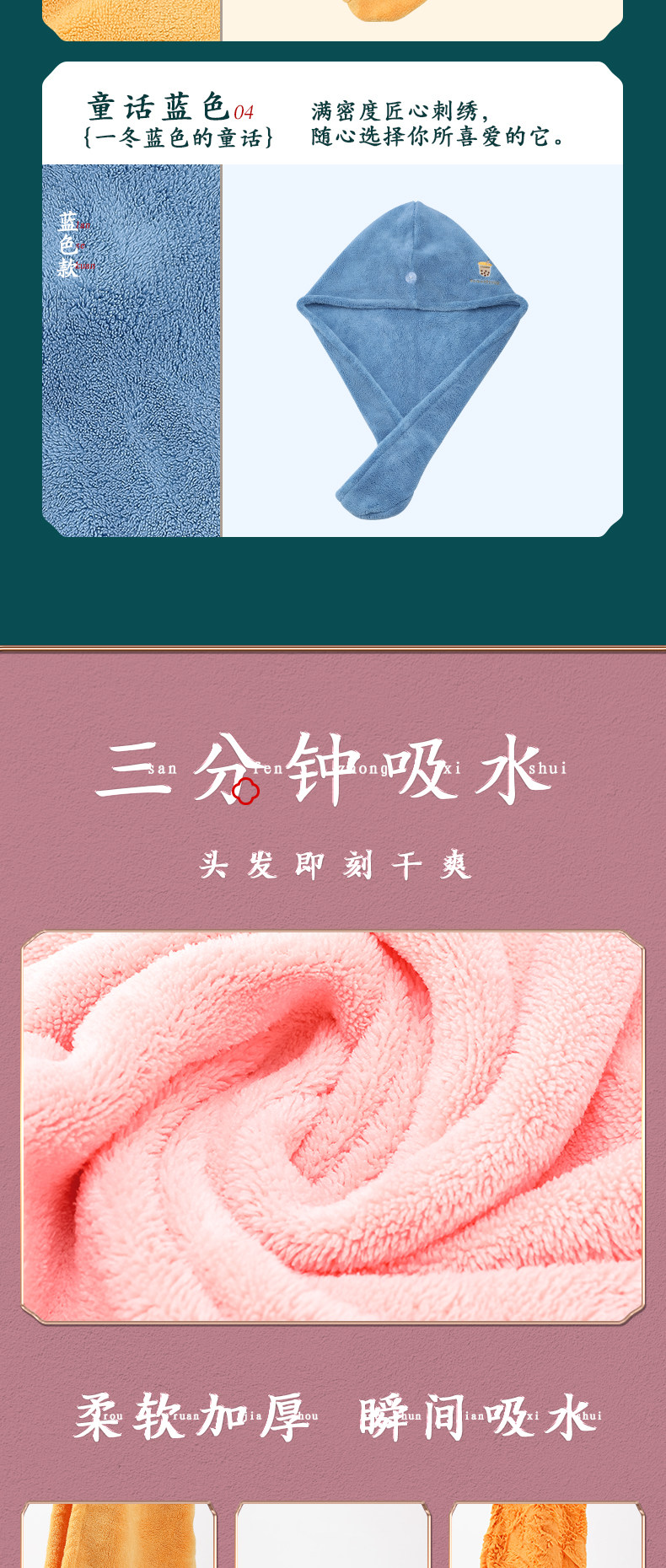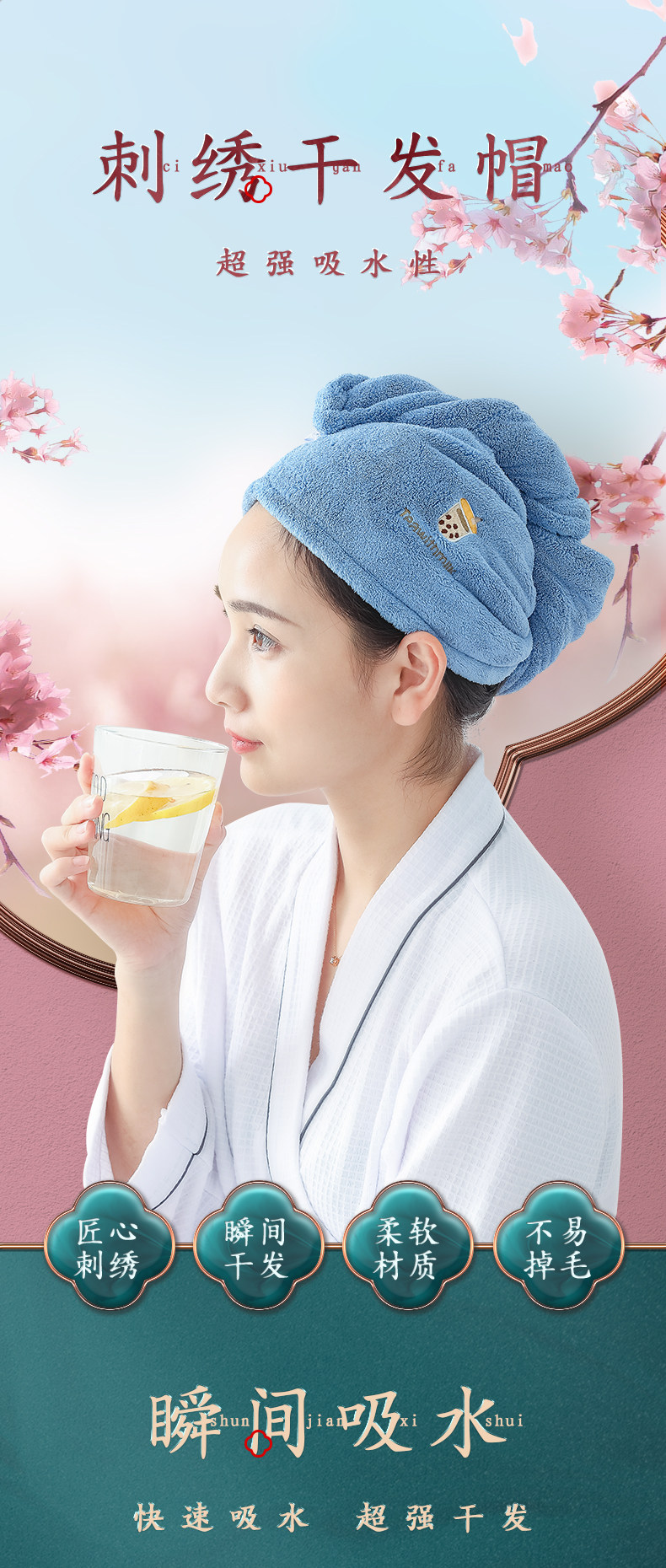 Полотенце для волос, быстросохнущая шапочка для душа, детский платок, с вышивкой, хорошо впитывает воду