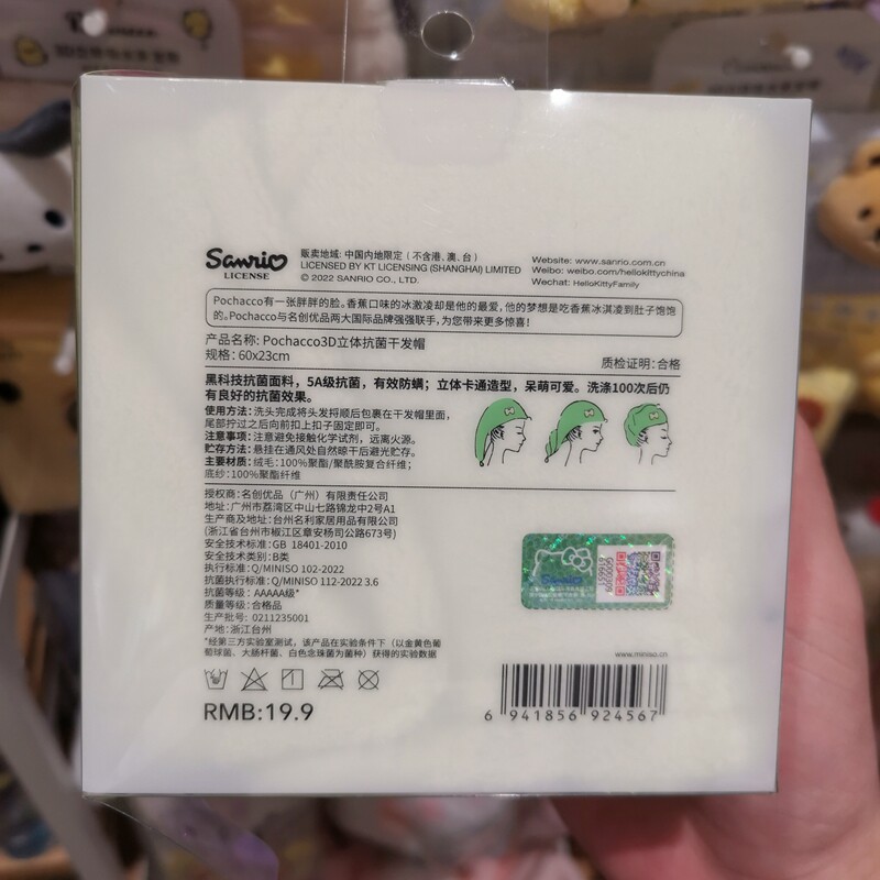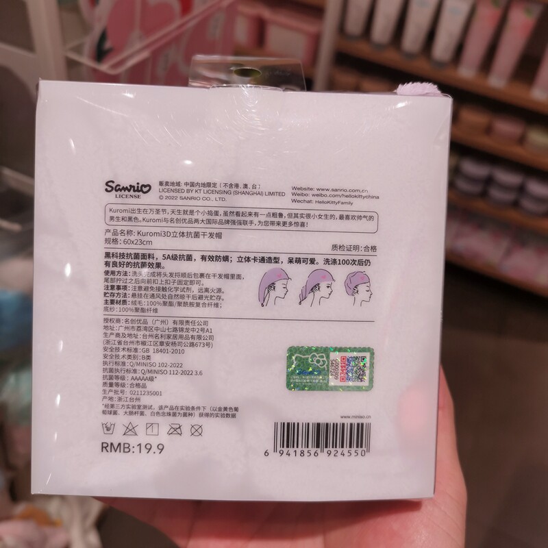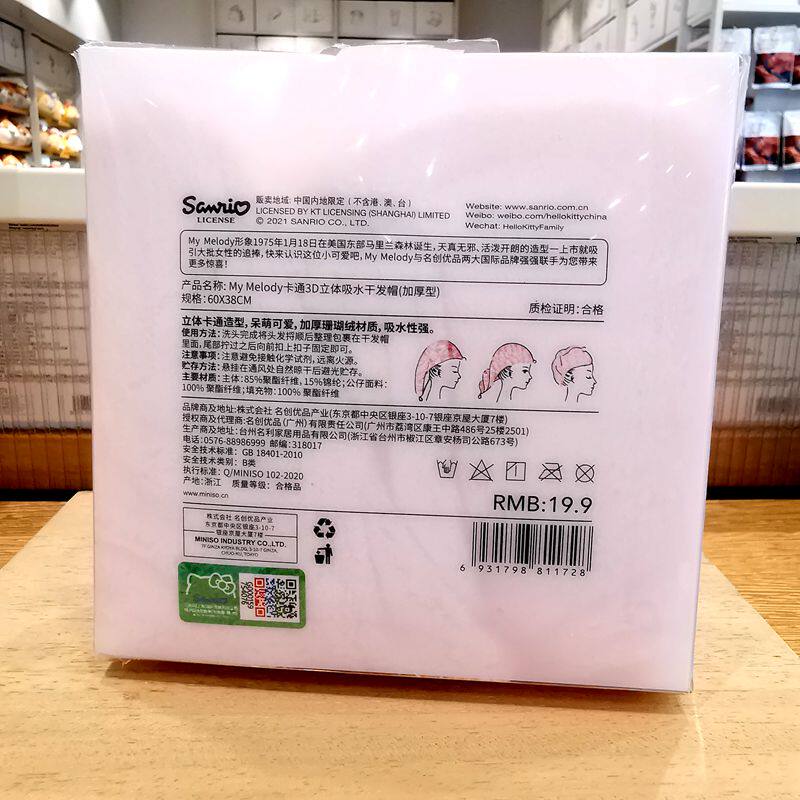Sanrio, трехмерное антибактериальное мультяшное полотенце для волос, повязка на голову, 3D, хорошо впитывает воду, увеличенная толщина