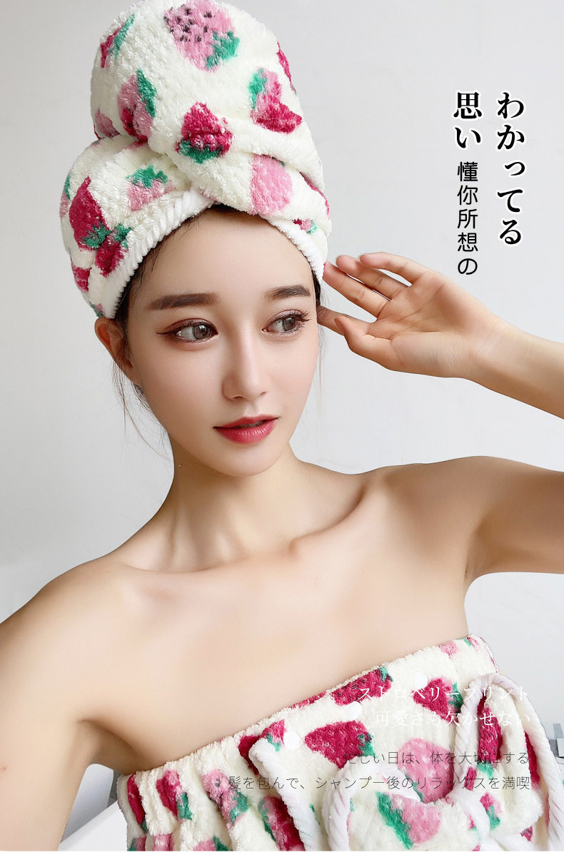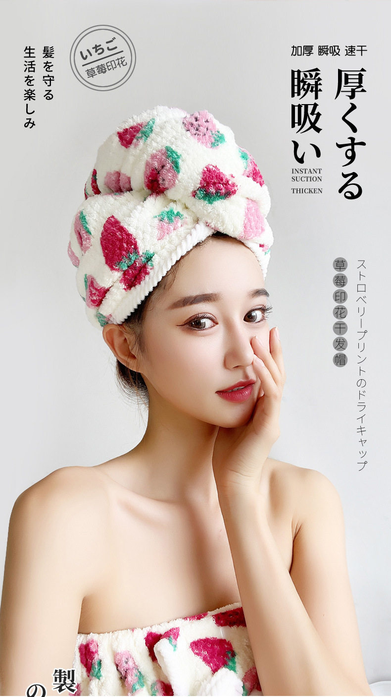 Клубника, полотенце для волос, быстросохнущая японская милая шапочка для душа, увеличенная толщина, хорошо впитывает воду, новая коллекция