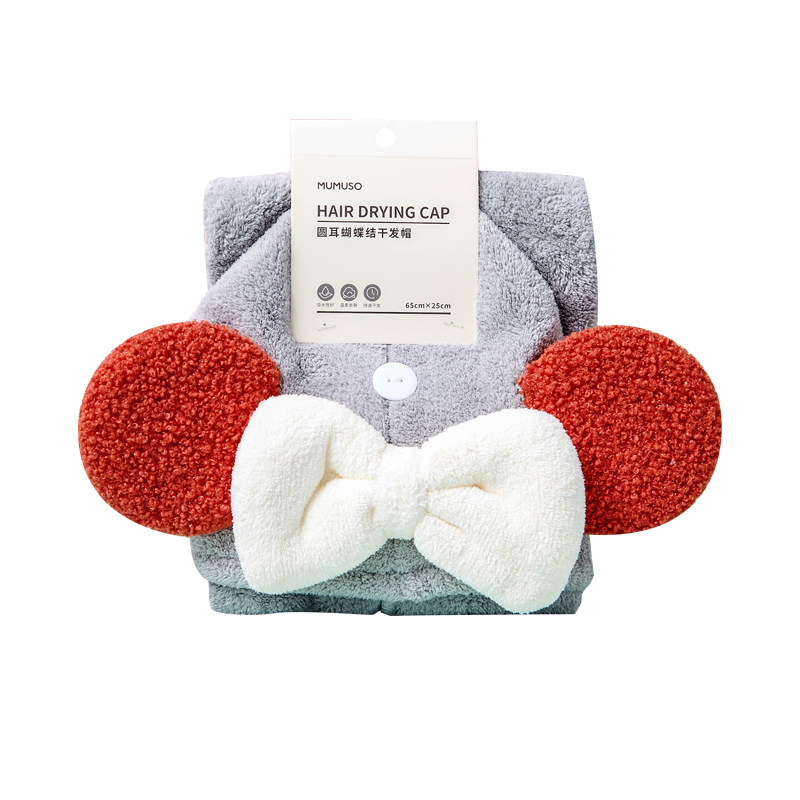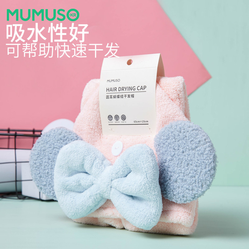MUMUSO木槿生活 Полотенце для волос с бантиком, быстросохнущий сухой шампунь, милая шапочка для душа, хорошо впитывает воду