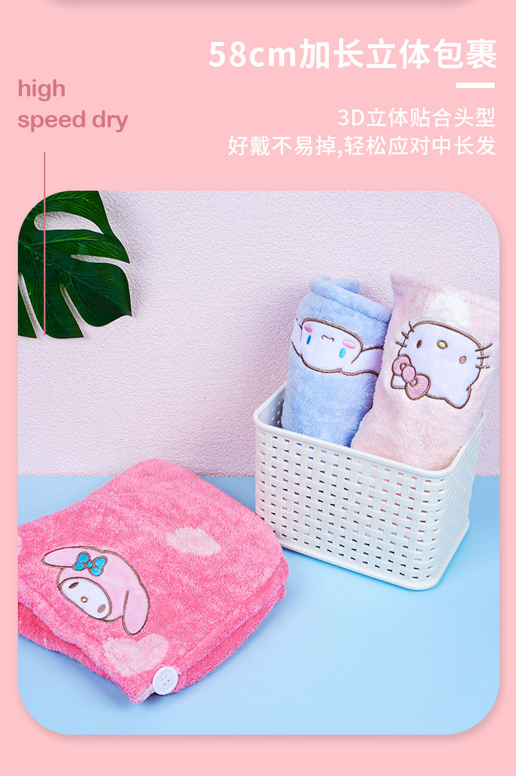 Sanrio, коралловое бархатное полотенце для волос, платок, шапочка для душа, хорошо впитывает воду