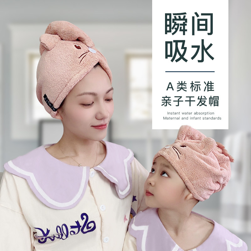 Милое полотенце для волос, детский мультяшный сухой платок, шапочка для душа для взрослых, семейный стиль, хорошо впитывает воду, увеличенная толщина