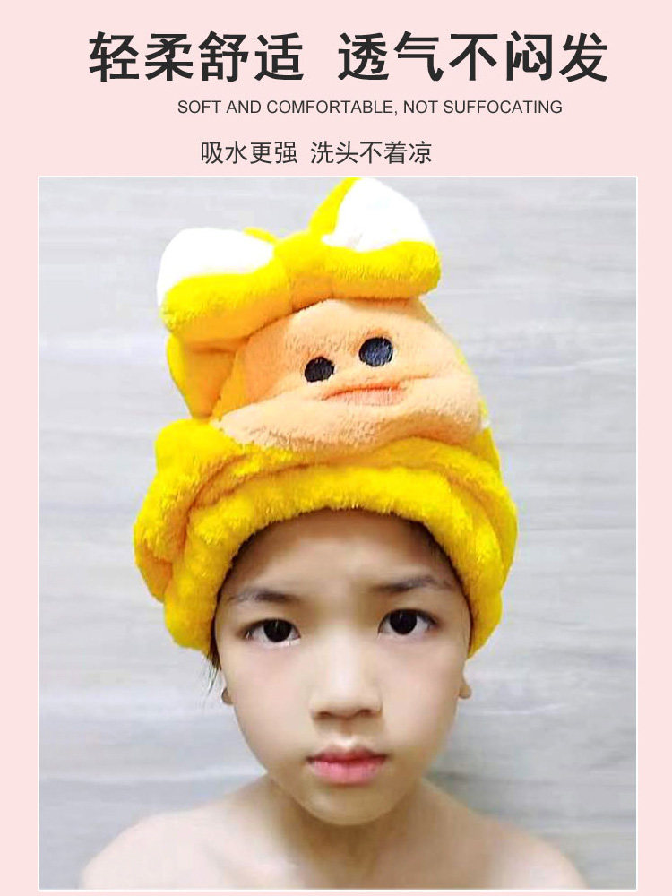Детское полотенце для волос, шапочка для душа, милый быстросохнущий сухой платок, увеличенная толщина, хорошо впитывает воду