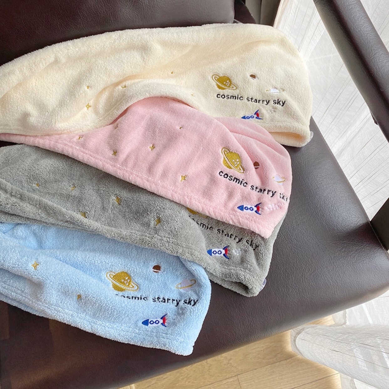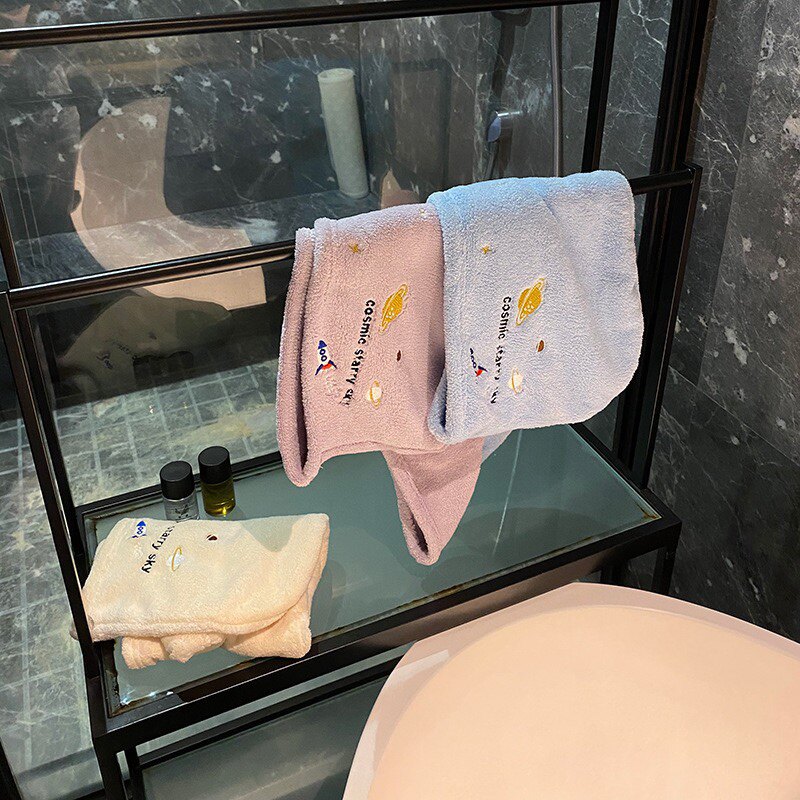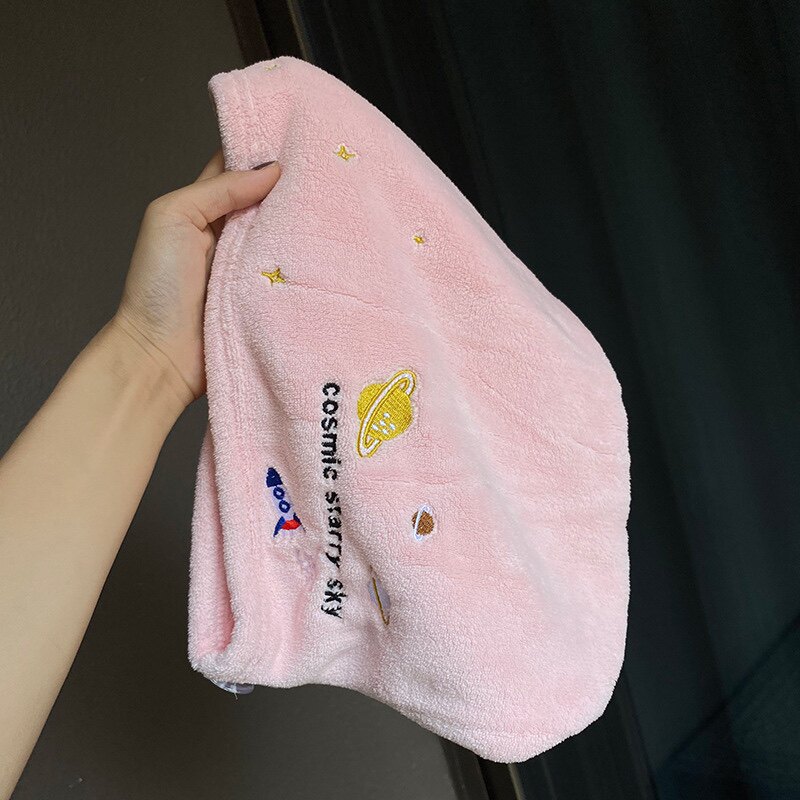 Милое коралловое полотенце для волос, сухая быстросохнущая шапочка для душа, с вышивкой, хорошо впитывает воду