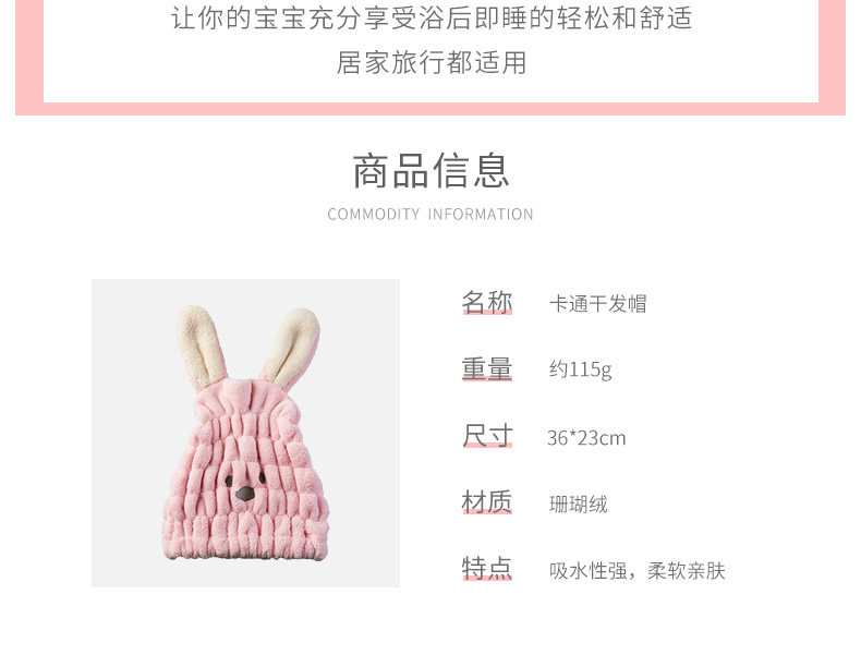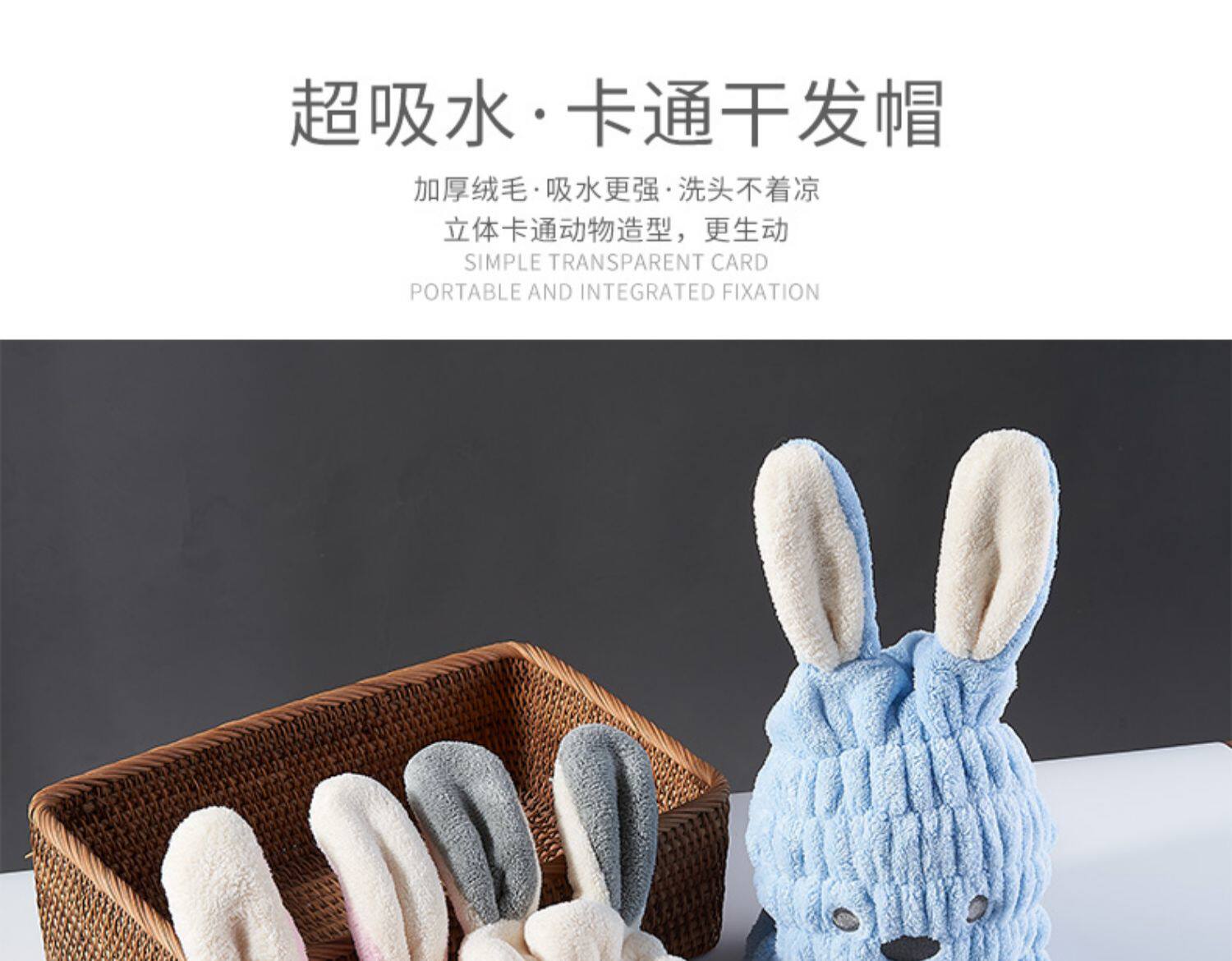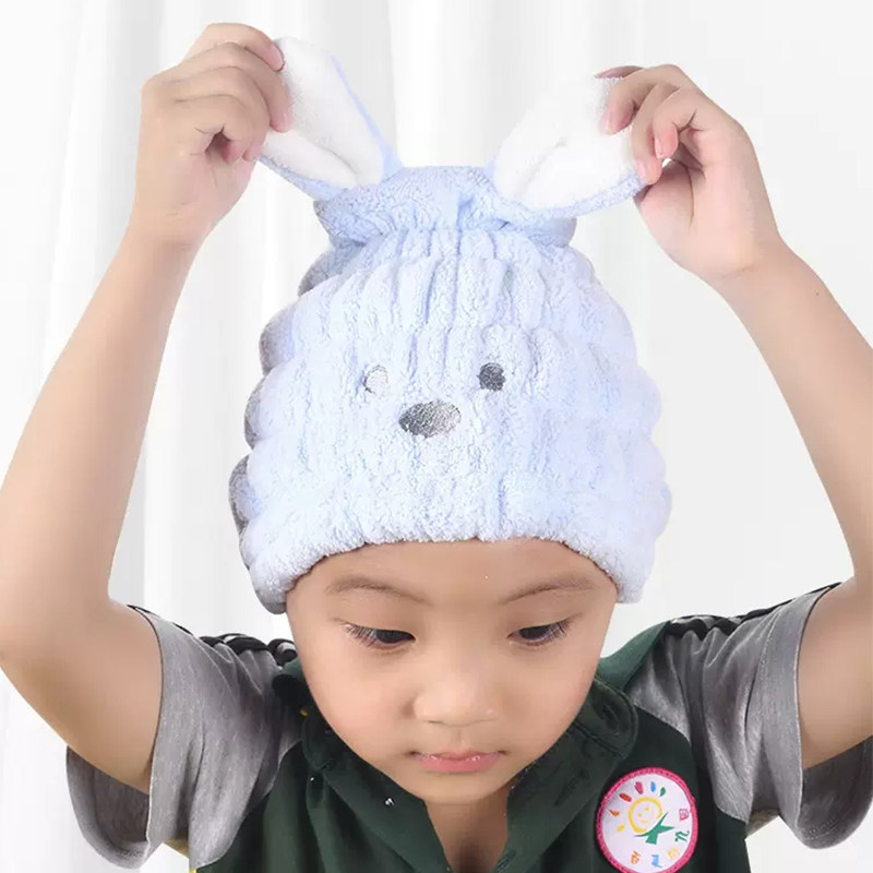 Детское мультяшное полотенце для волос, кролик, быстросохнущая шапочка для душа, детская шапочка, сухой платок, хорошо впитывает воду, увеличенная толщина