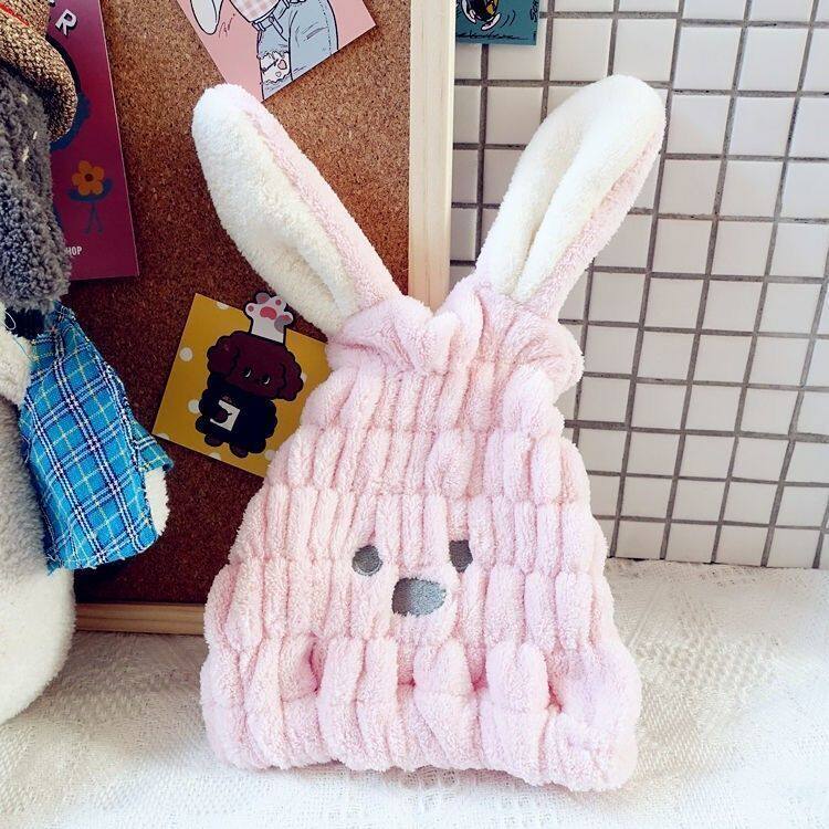 - Мультяшный розовый кролик, розовое полотенце для волос