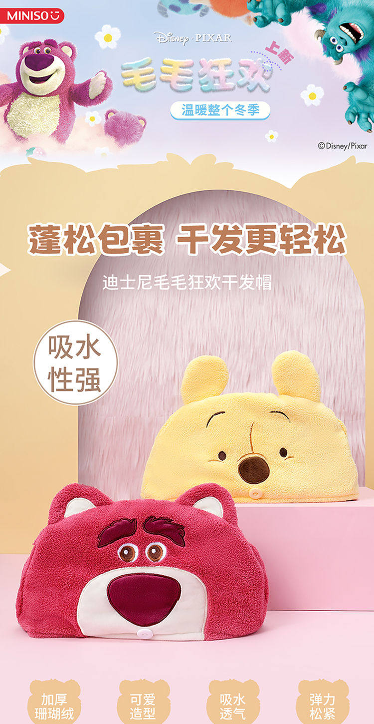 Miniso, клубника, полотенце для волос, плюшевый быстросохнущий мультяшный платок, Винни-Пух, хорошо впитывает воду