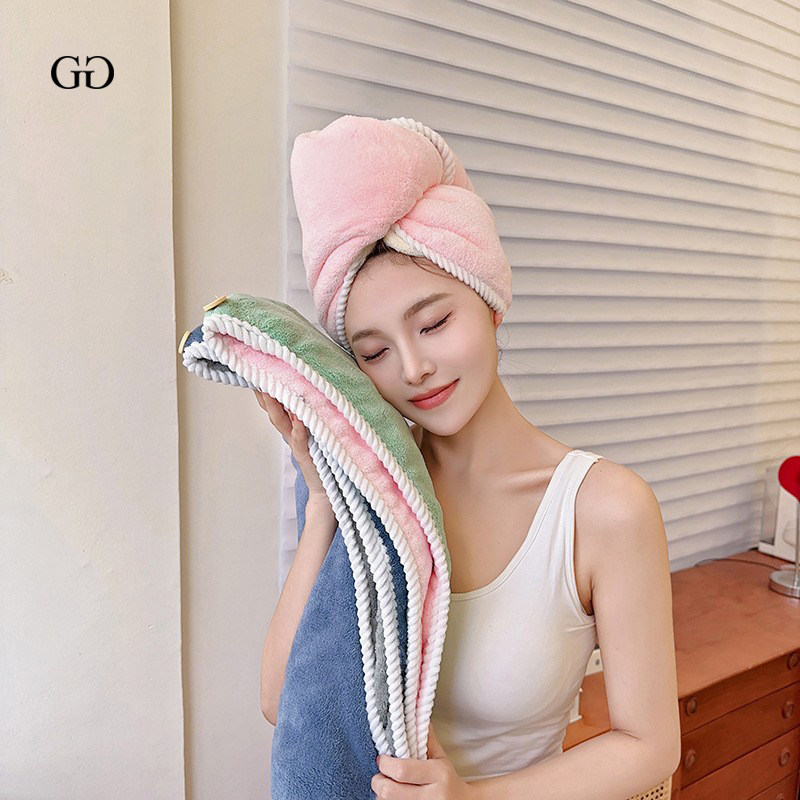 Двусторонное полотенце для волос, сухая быстросохнущая шапочка для душа, увеличенная толщина, хорошо впитывает воду