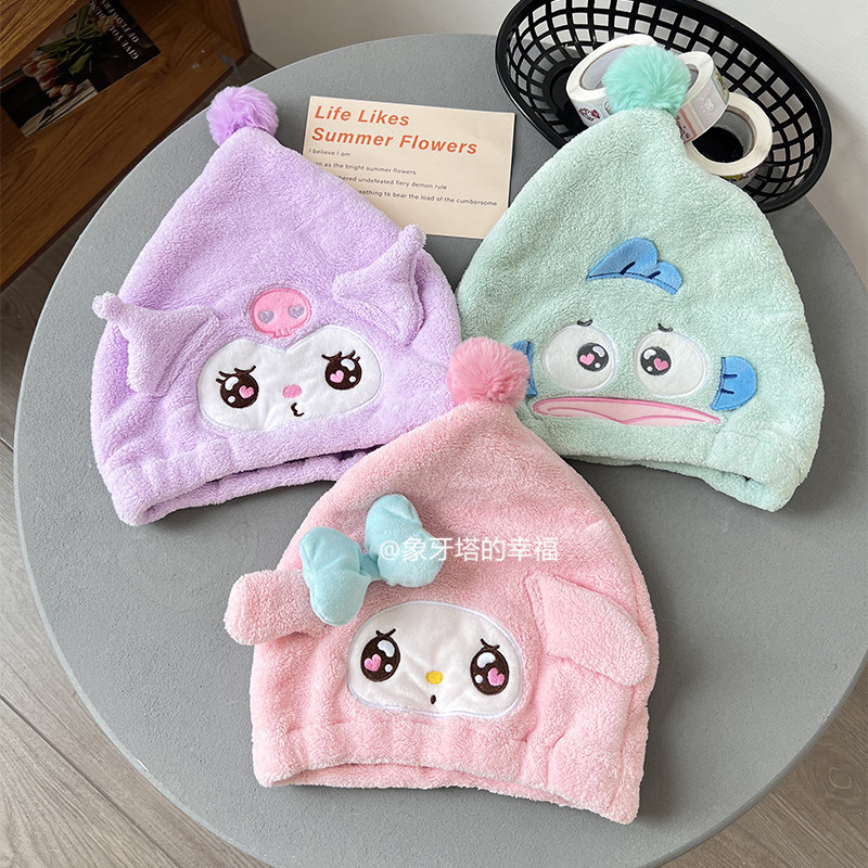 Японское мультяшное коралловое бархатное полотенце для волос, платок, шапочка для душа