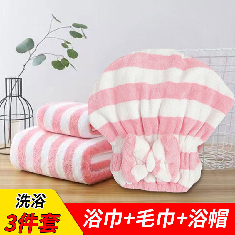 Полотенце для волос, банное полотенце, хлопковый коралловый комплект, бархатная шапочка для душа, 3 предмета, хорошо впитывает воду, коллекция 2023