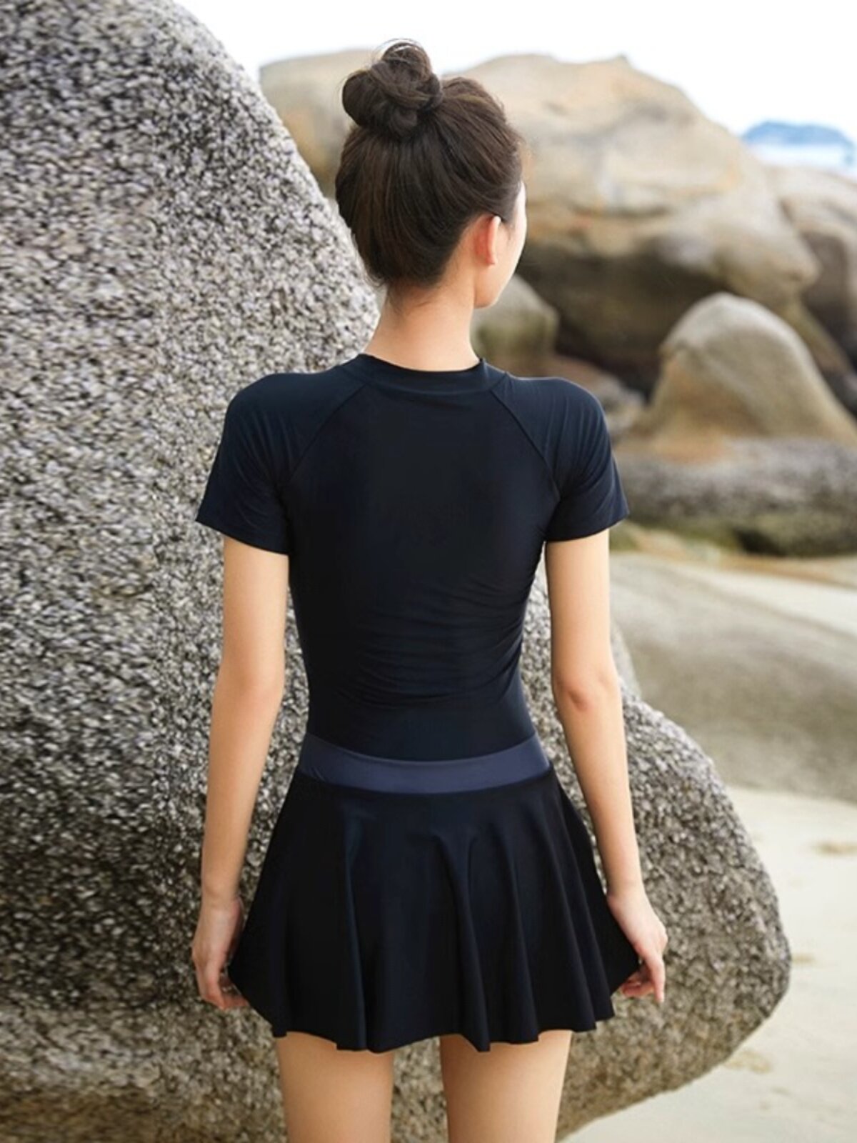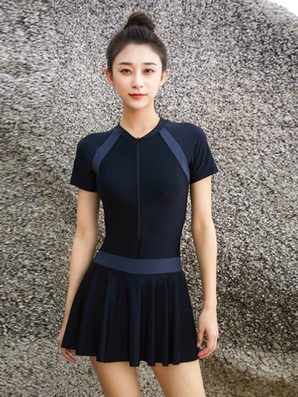 Rouje Londe Hot Spring Swimsuit консервативная плоская плоская -под соединенная юбка Сексуальная покрытая животом, тонкий спорт, купальник большого размера