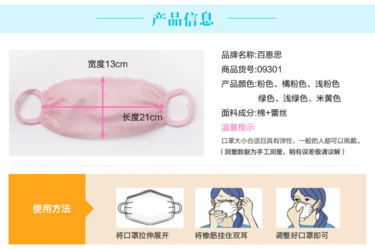 百恩思 Хлопковая тонкая дышащая дыхательная медицинская маска