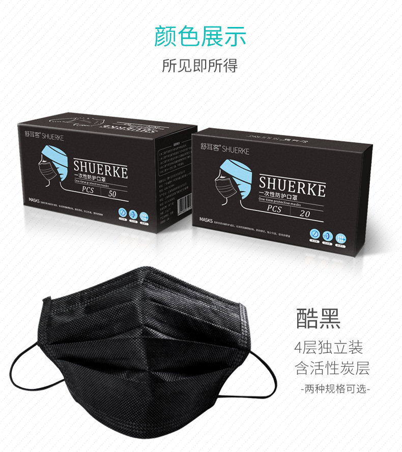 Одноразовая черная комфортная дышащая медицинская маска для взрослых