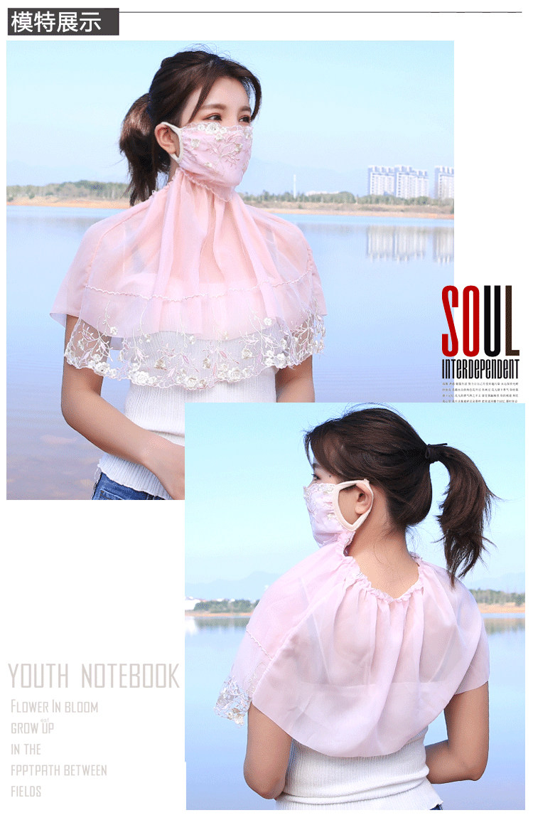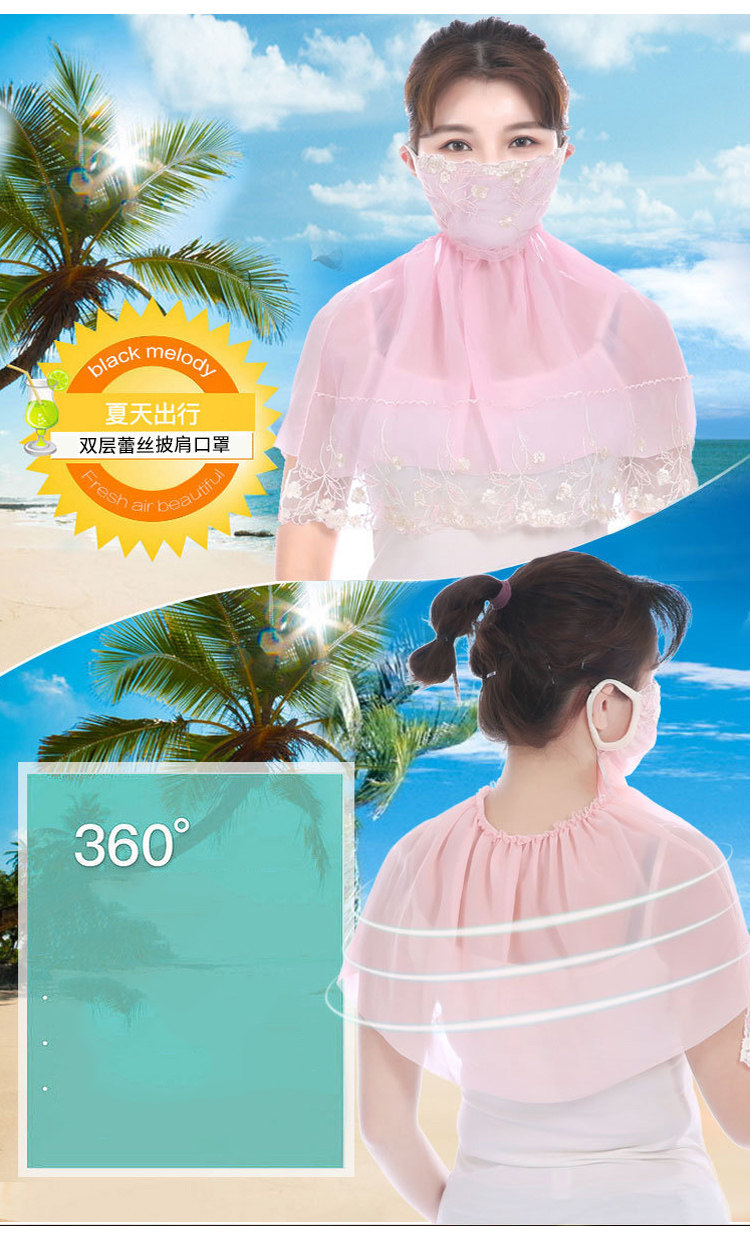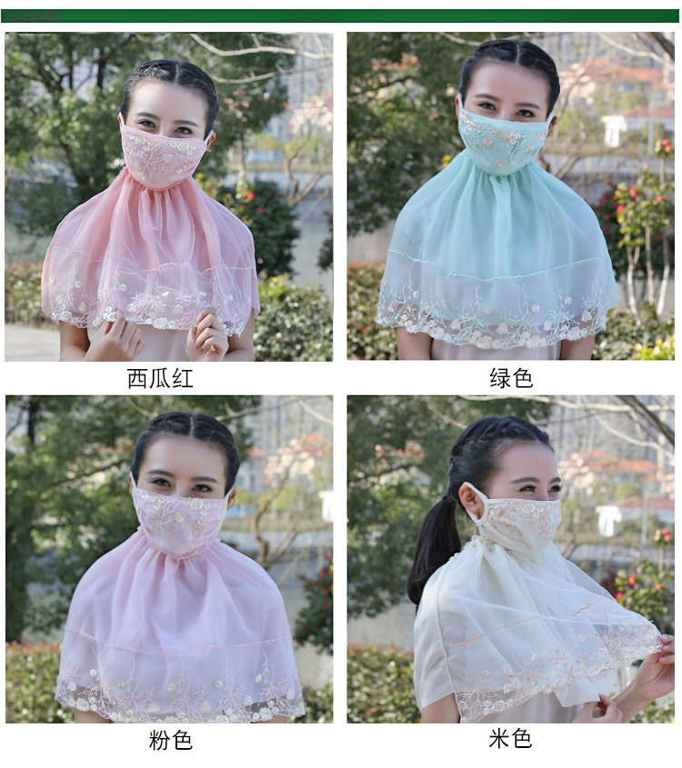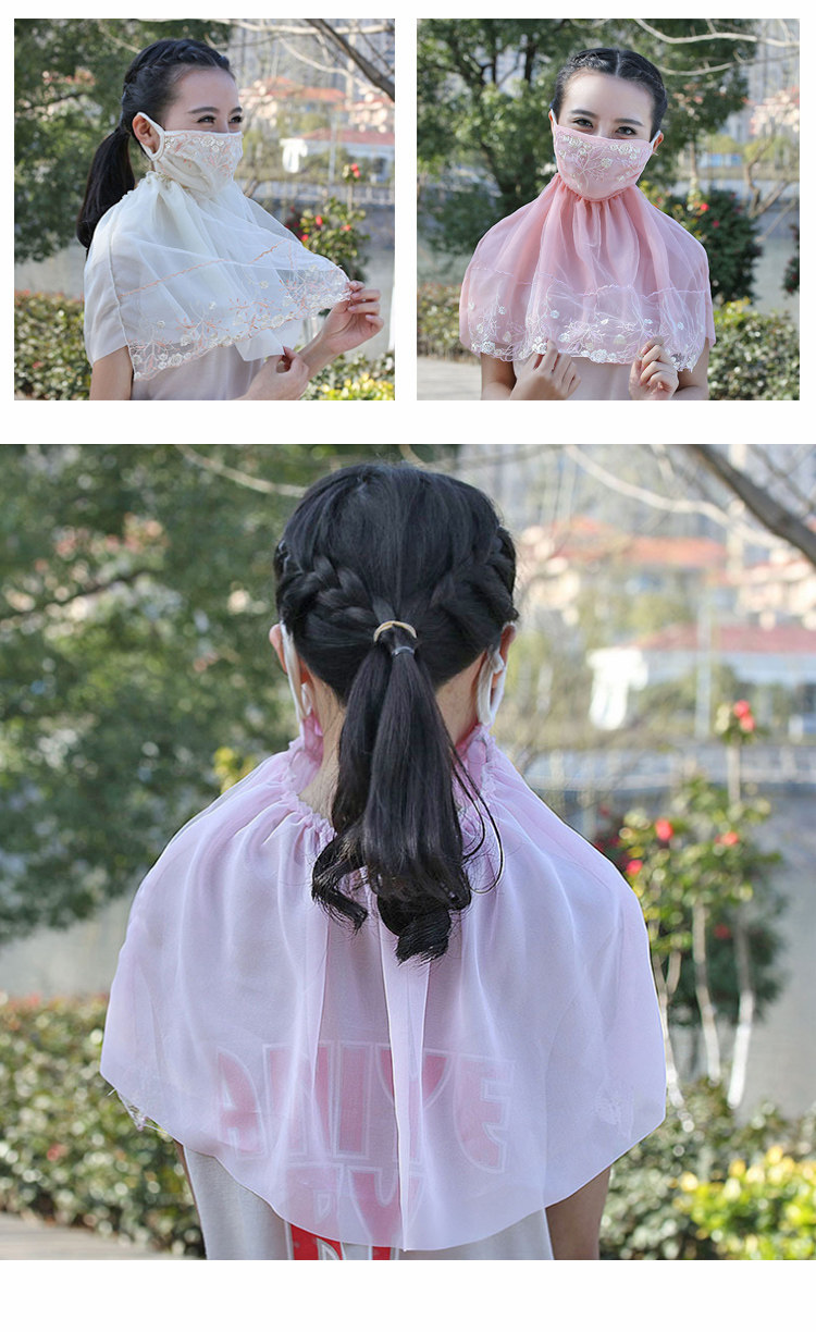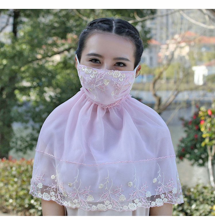 Тонкая кружевная летняя дышащая медицинская маска, вуаль, защита от солнца, с защитой шеи