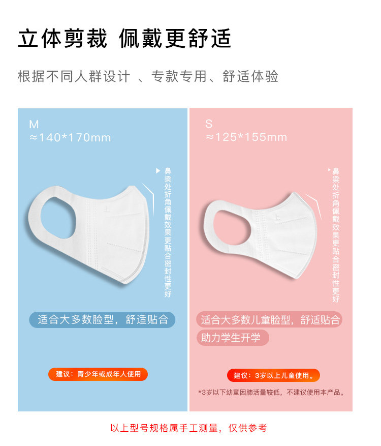 淘宝心选 Одноразовая трехмерная детская медицинская маска, 3D, на возраст 3-8 лет, 9-16 лет, 30 штук
