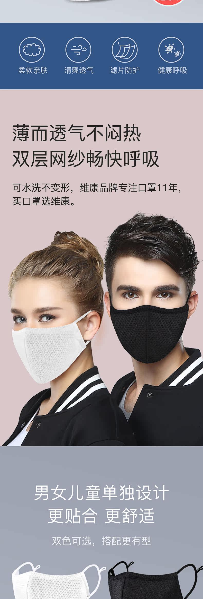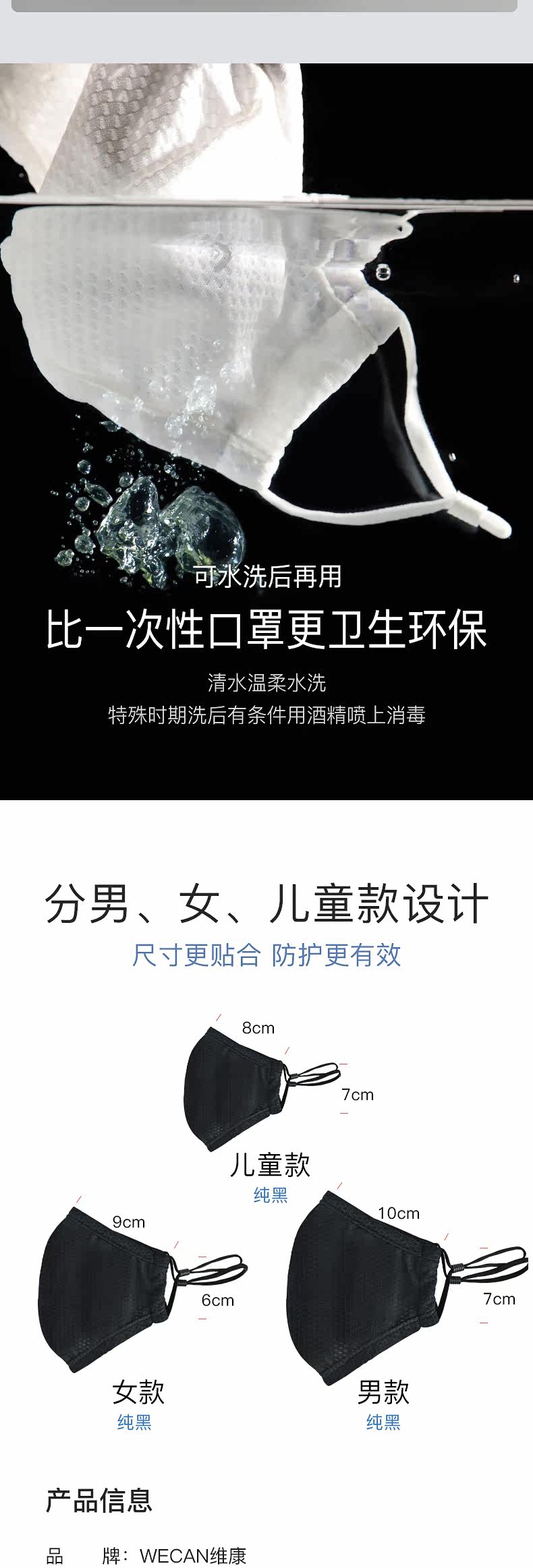 维康 Дышащая дыхательная хлопковая черная медицинская маска подходит для мужчин и женщин, (в наличии на складе)