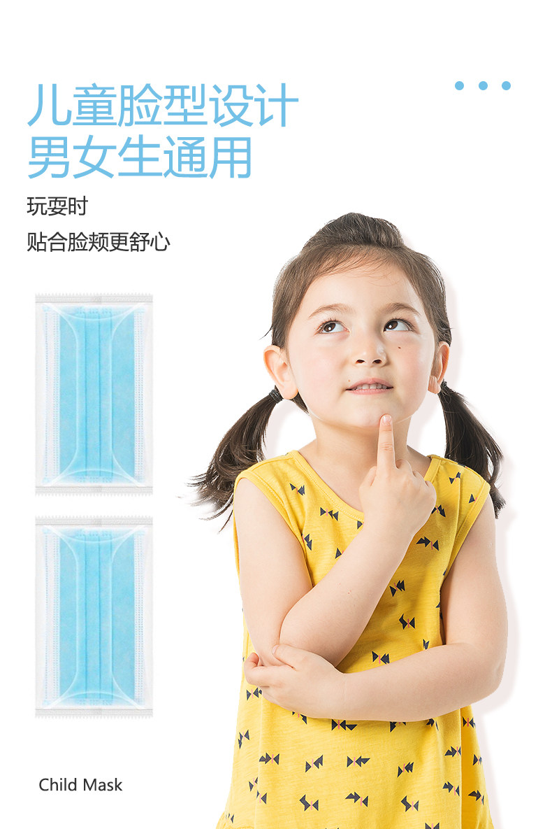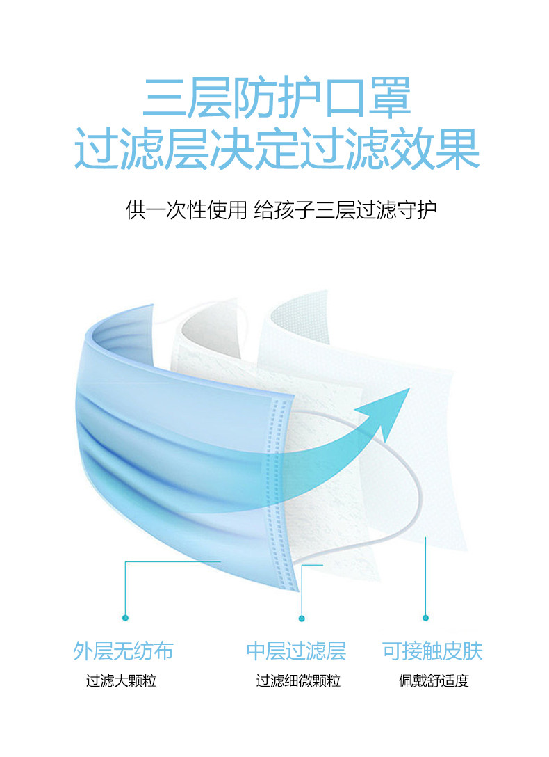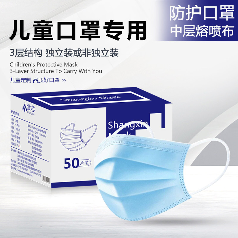 Одноразовая медицинская маска для мальчиков, синяя детская упаковка, 12 лет