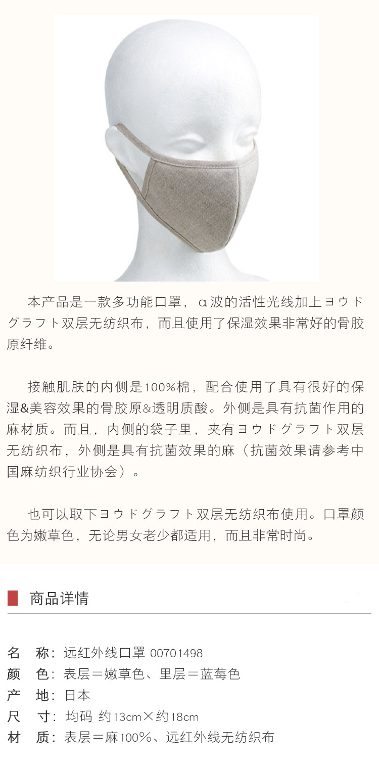 Японская импортная медицинская маска, прозрачный коллаген с гиалуроновой кислотой, УФ-защита, материал, из хлопка и льна, можно стирать