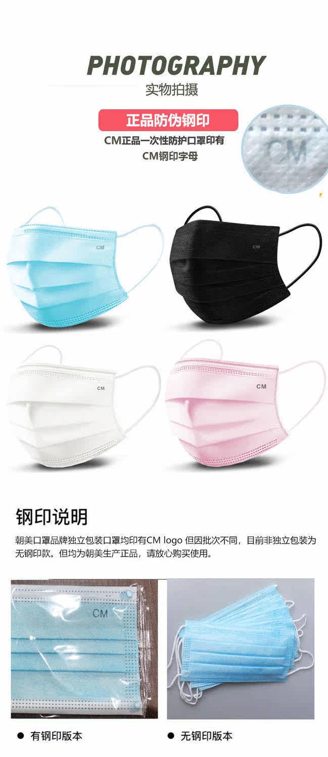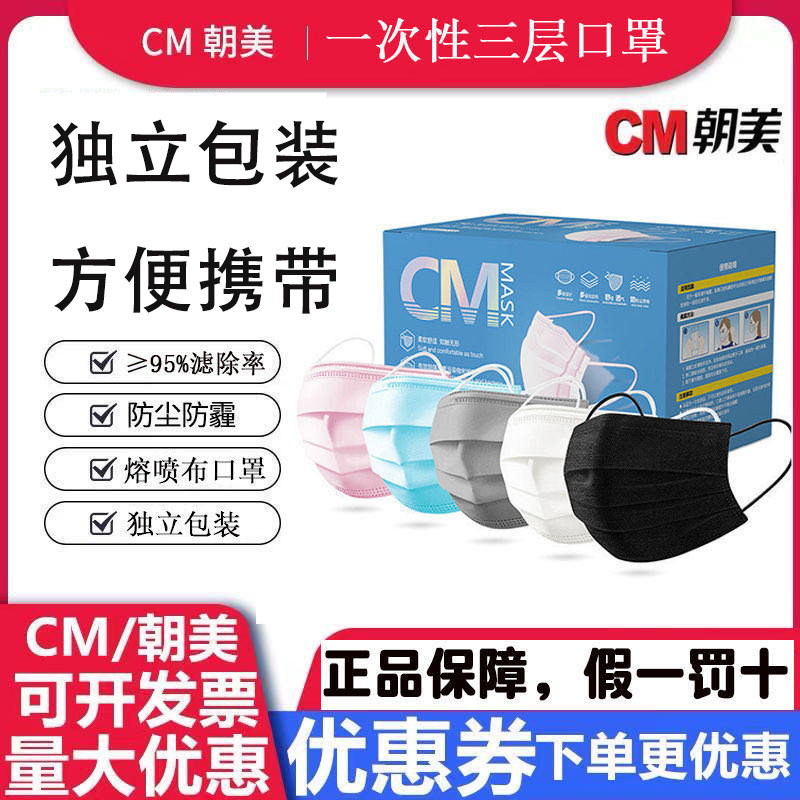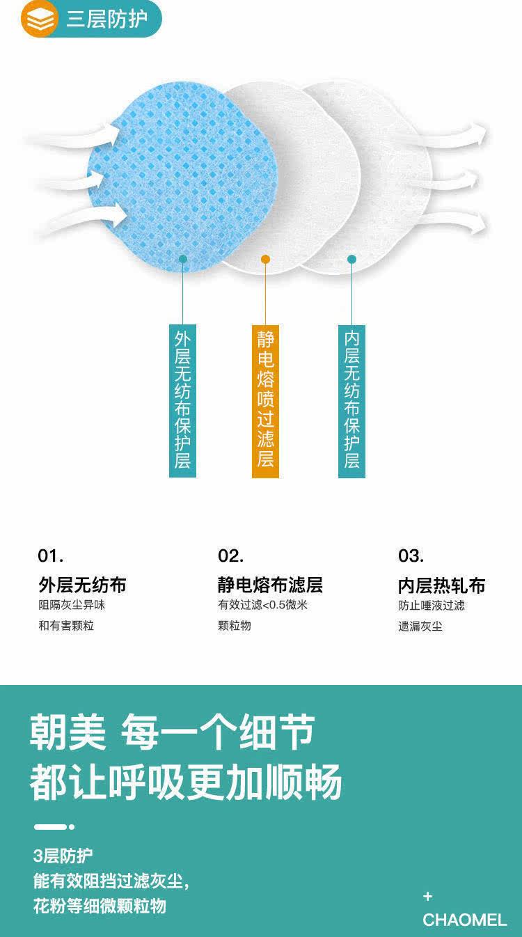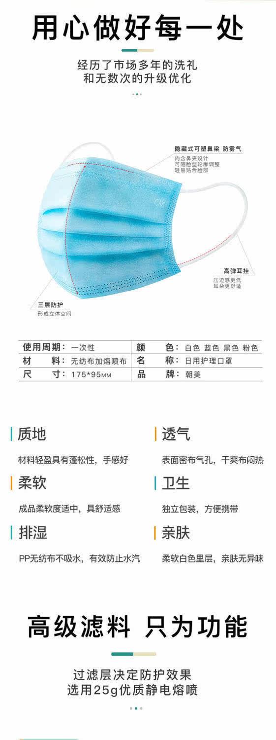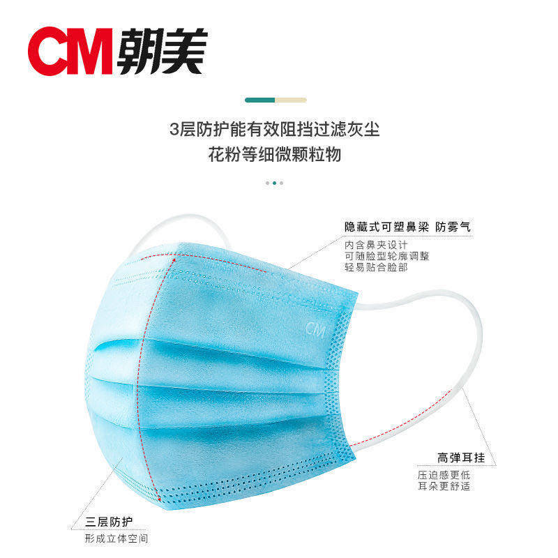 朝美 Одноразовая синяя ультратонкая дышащая медицинская маска для взрослых