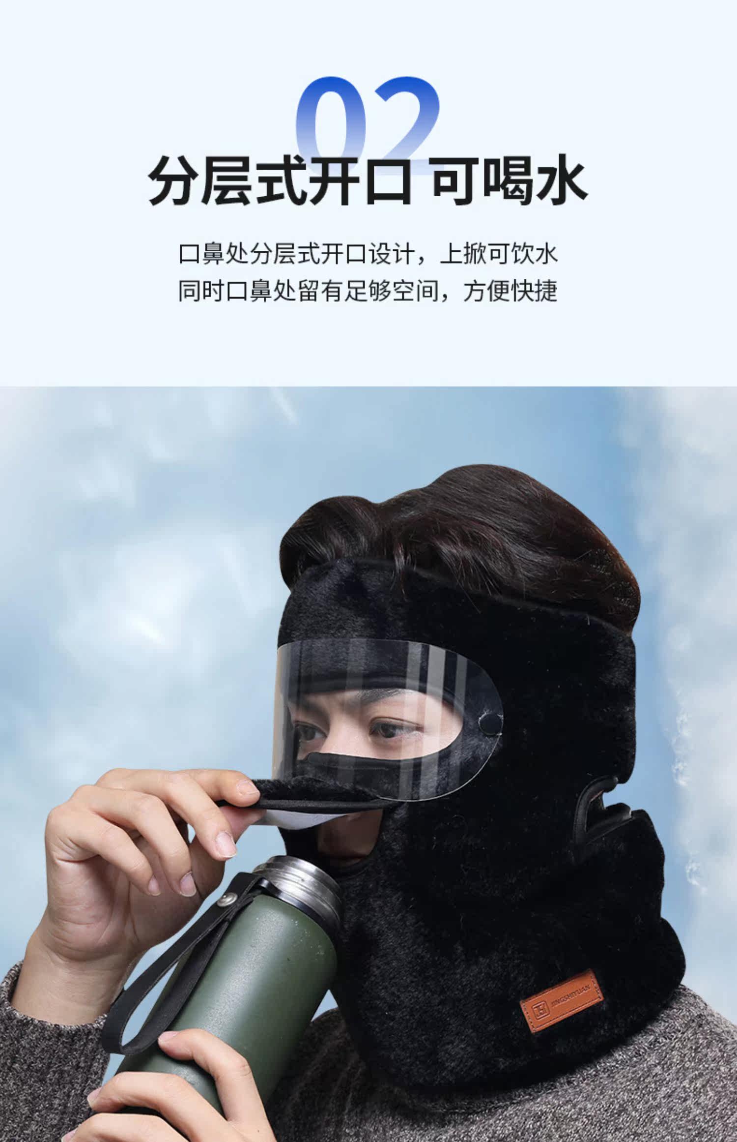 Ветрозащитная удерживающая тепло медицинская маска, с защитой шеи, увеличенная толщина