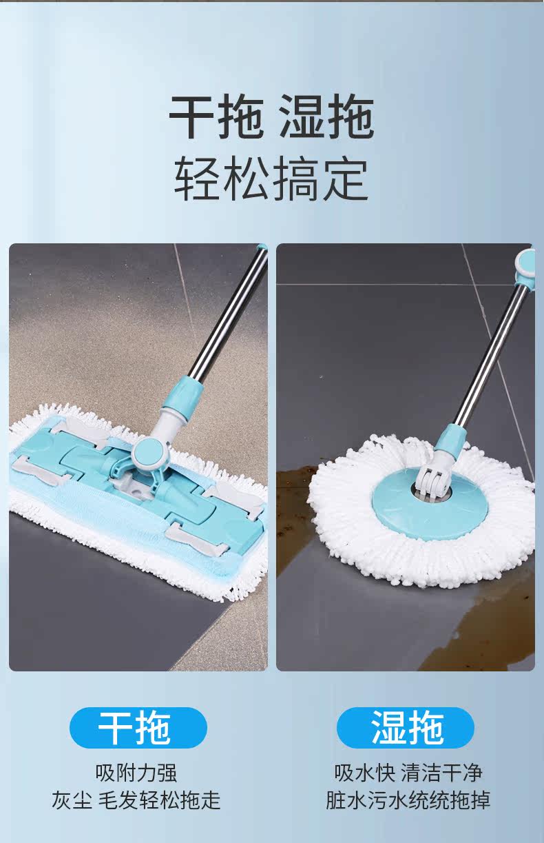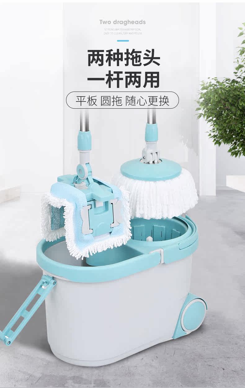 Красивые и элегантные вращающиеся швабры общего назначения шваброполита коктейли сухой домохозяйственной свалки воды и обезвоживание с двойным использованием ковша