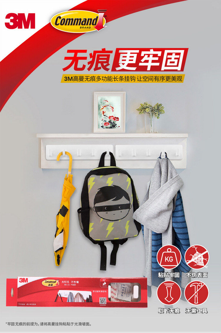 Подлинный 3M Gaoman -Free Long Strip Multi -Use Kitchen Crowe Crong Sticky Clock стена липкие клейкие двери после освобождения от двери