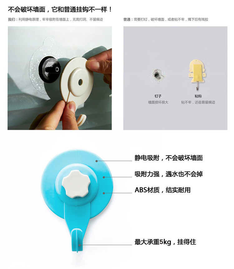 美可 Статическая мембранная крюк без трассе вакуумной всасывание ванной комнаты для ванной комнаты стена творческая шляпа творческая шляпа Статический патч большой липкий крюк