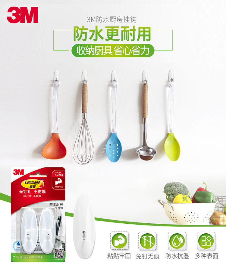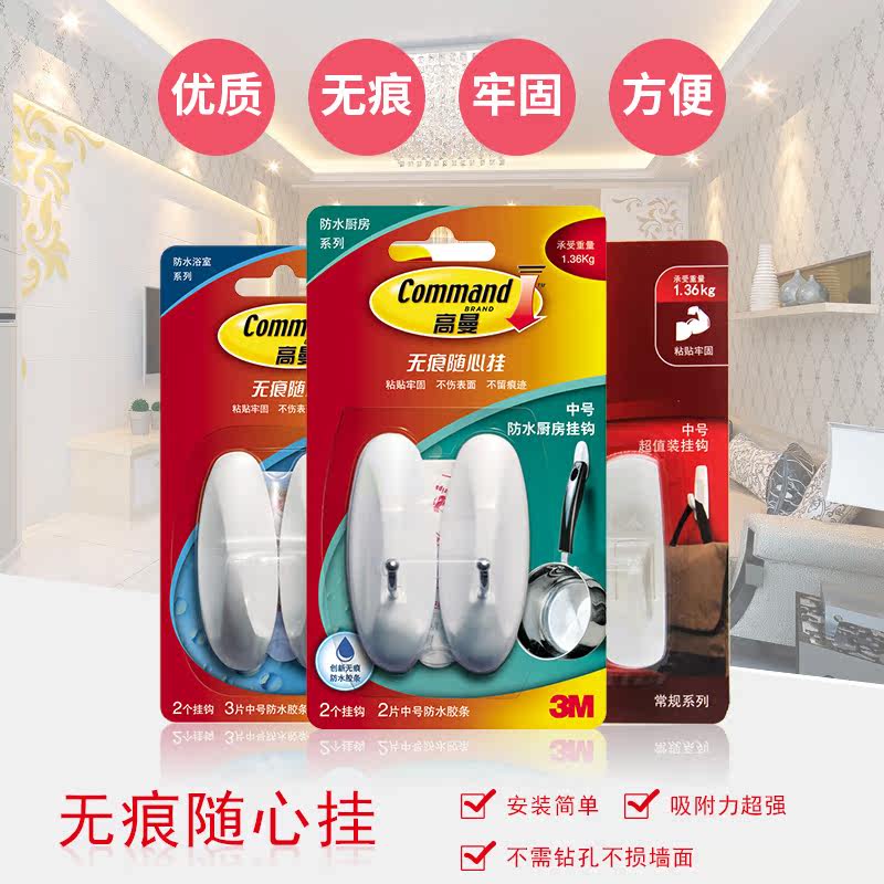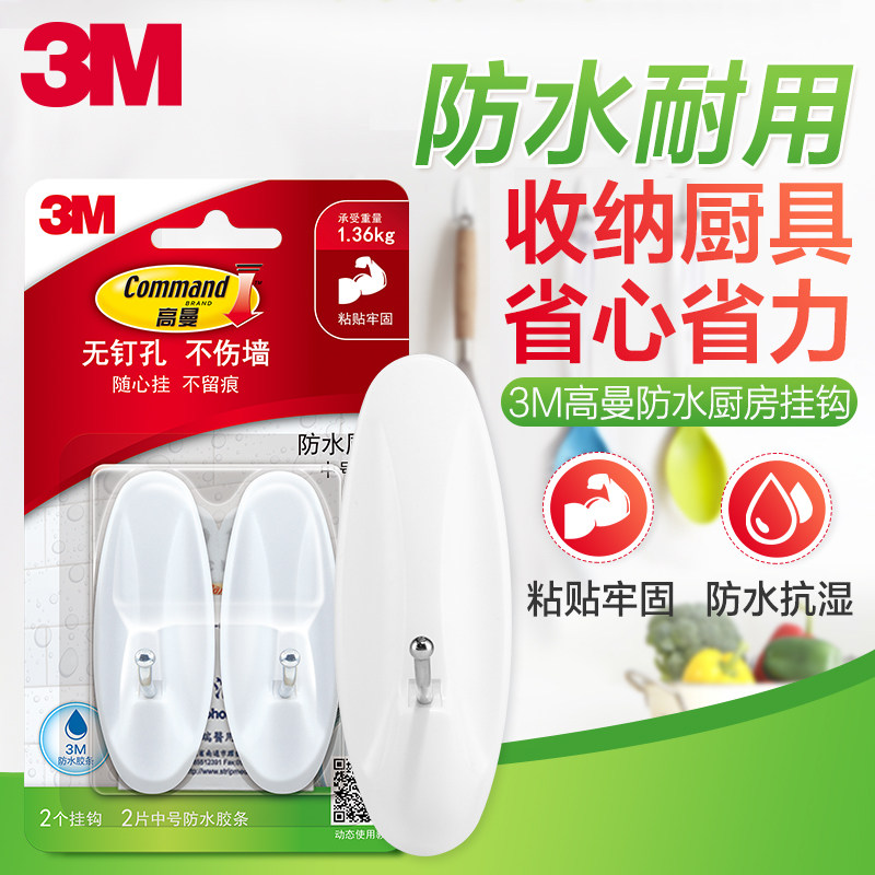 3M Гуманский водонепроницаемый кухонный крючок без трассировки прочный клей ванная комната ванная комната для ванной комнаты дома на стене висячи