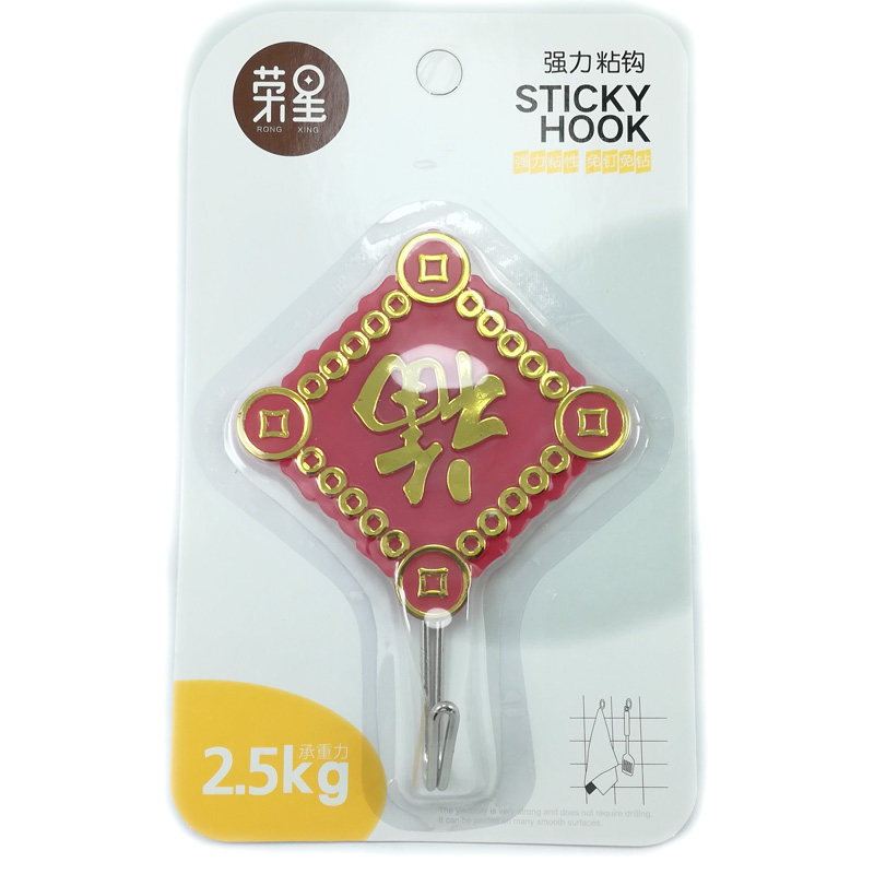 Мощный красный крюк перевернутый персонаж Благословения назад липкая резинка за дверью крюк липкий крюк домашний клей китайский клей без следов нагрузки