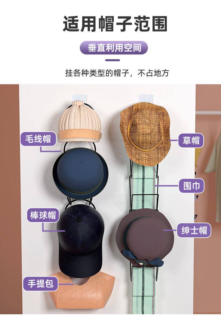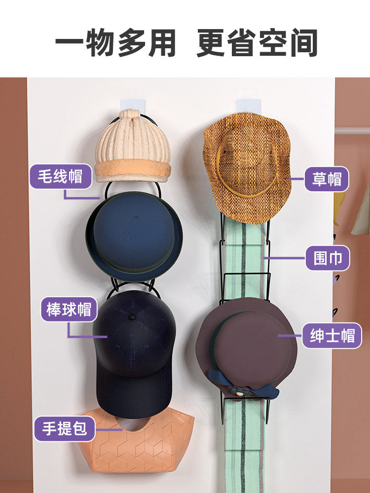 Подвесная шляпа хранение и организация артефакта стена -дверная шкаф об общежитию за позади слоев и крючков, творческие сумки для многослойной полки