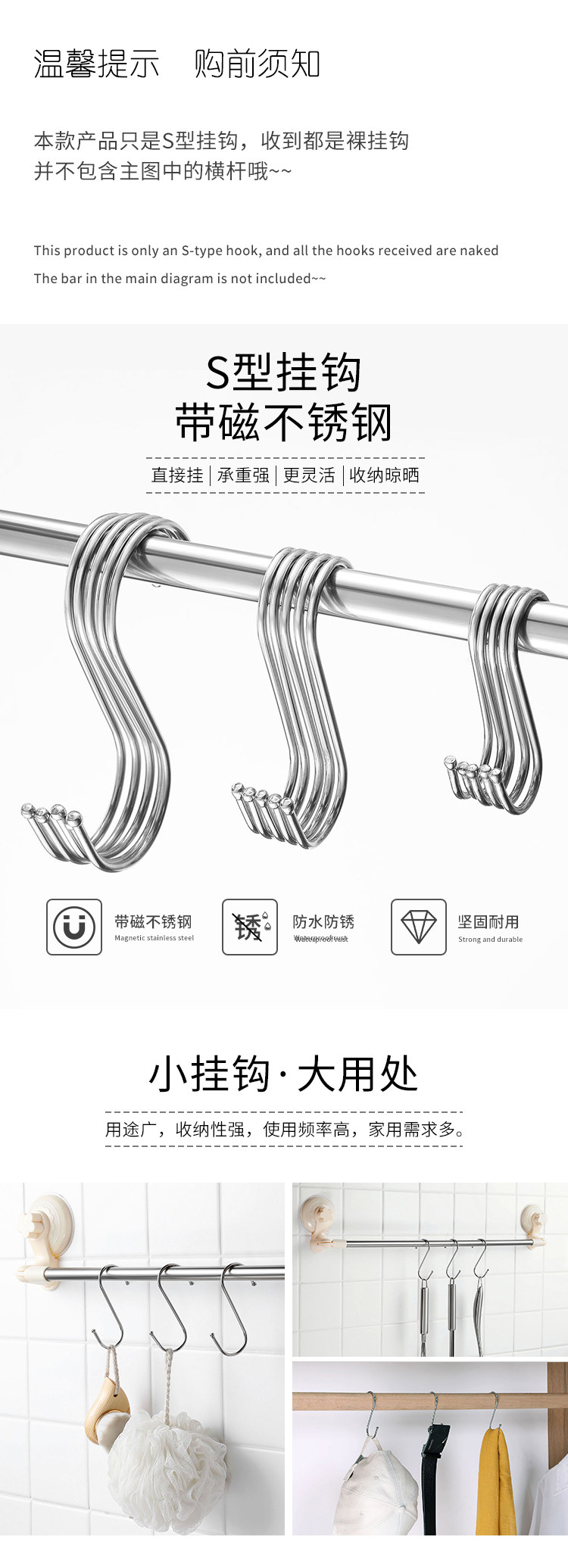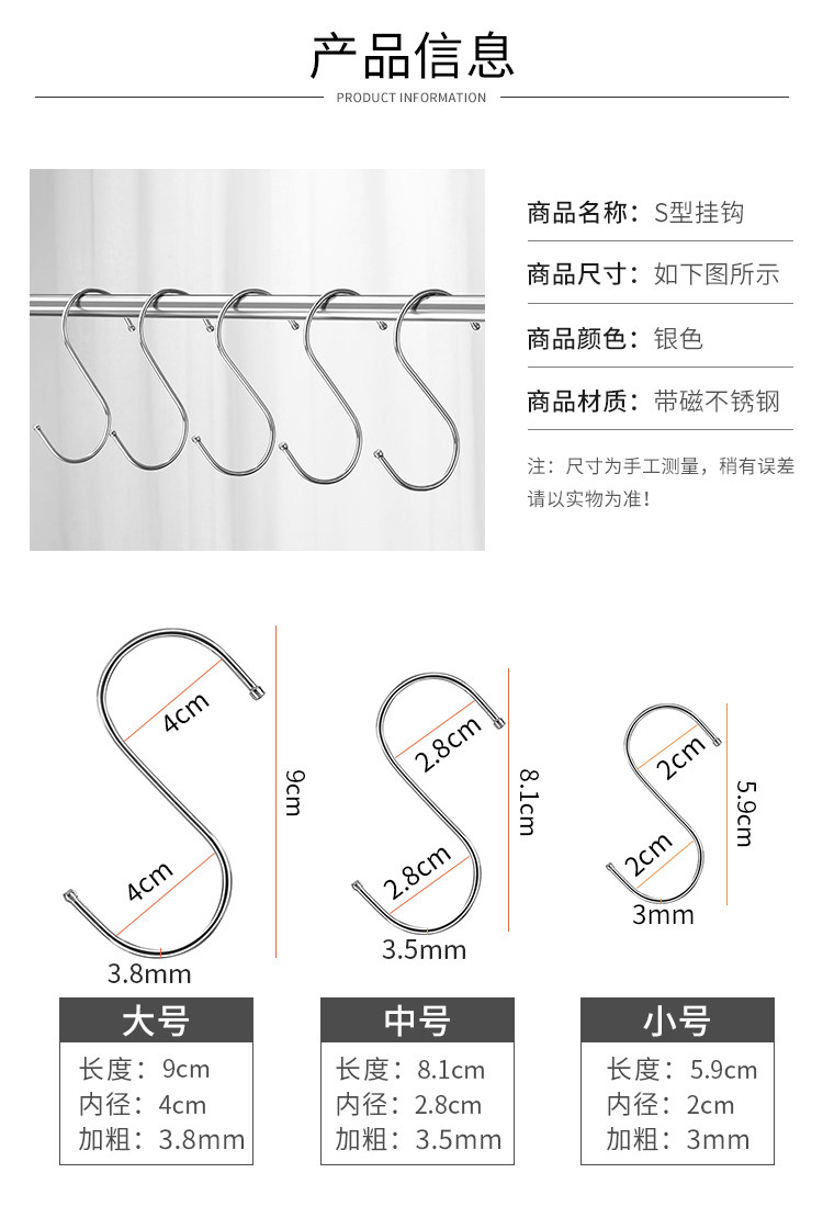 Крюк из нержавеющей стали S -обработка железного крючка -крюк -крюк -крюк для домохозяйства.