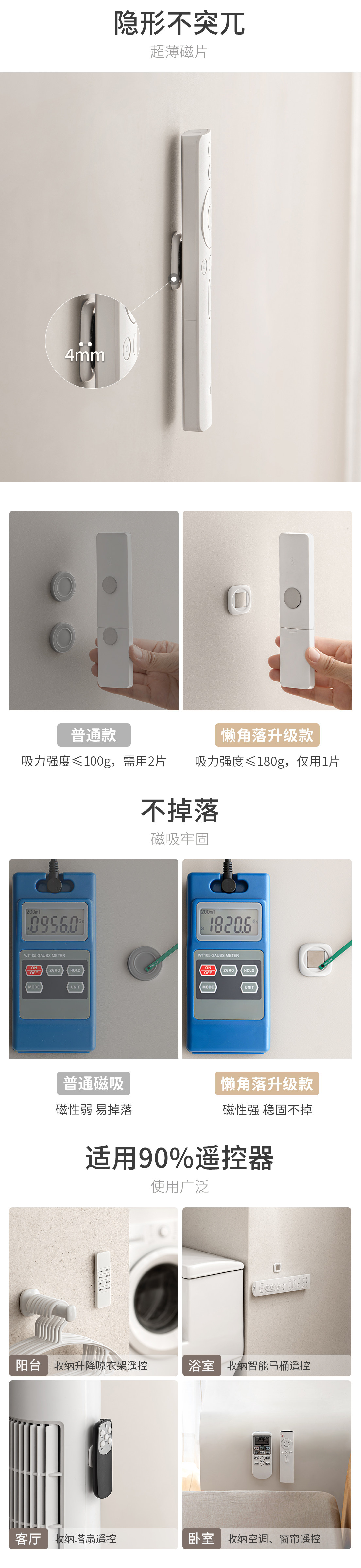 懒角落 Магнитная наклейка с дистанционным управлением, настенный крючок для хранения, настенная вешалка на присоске, мощный держатель для кондиционера