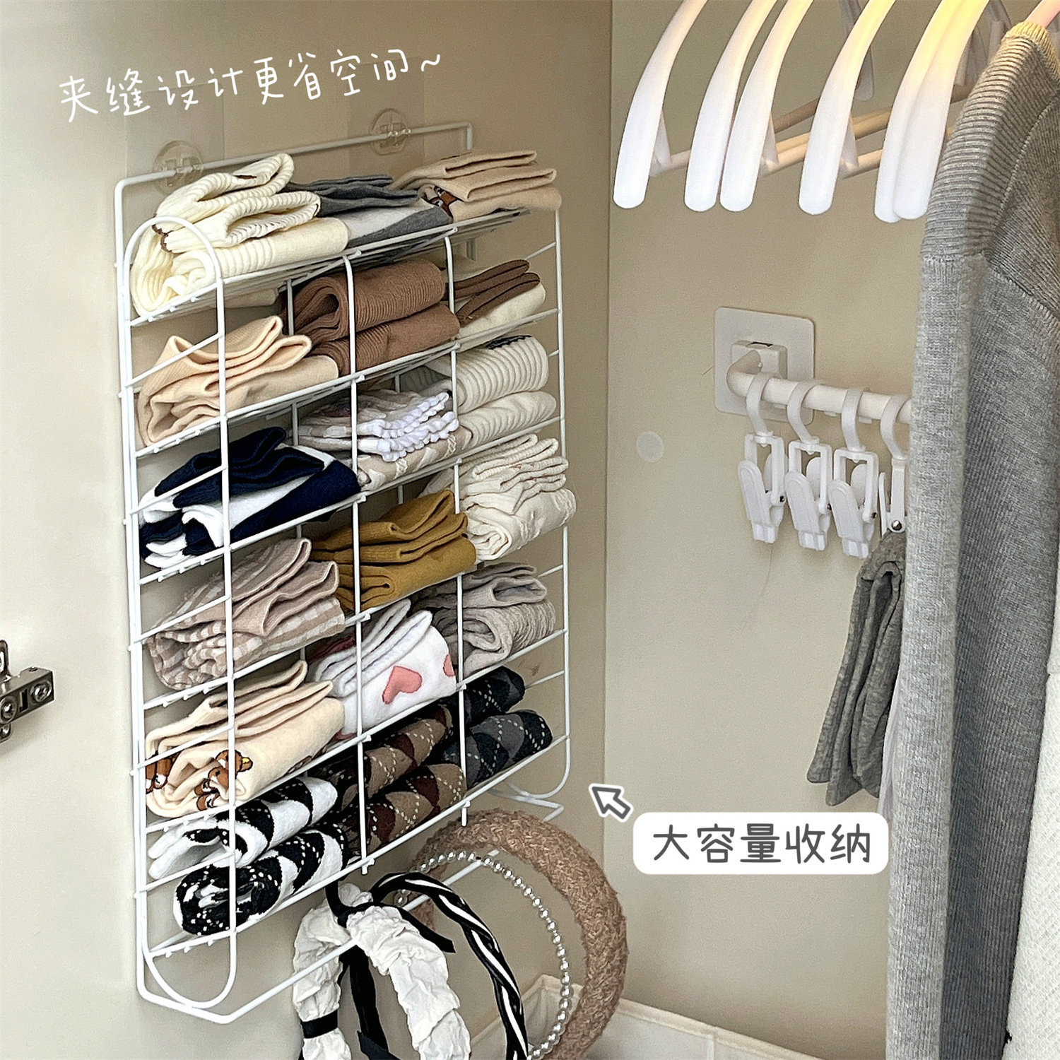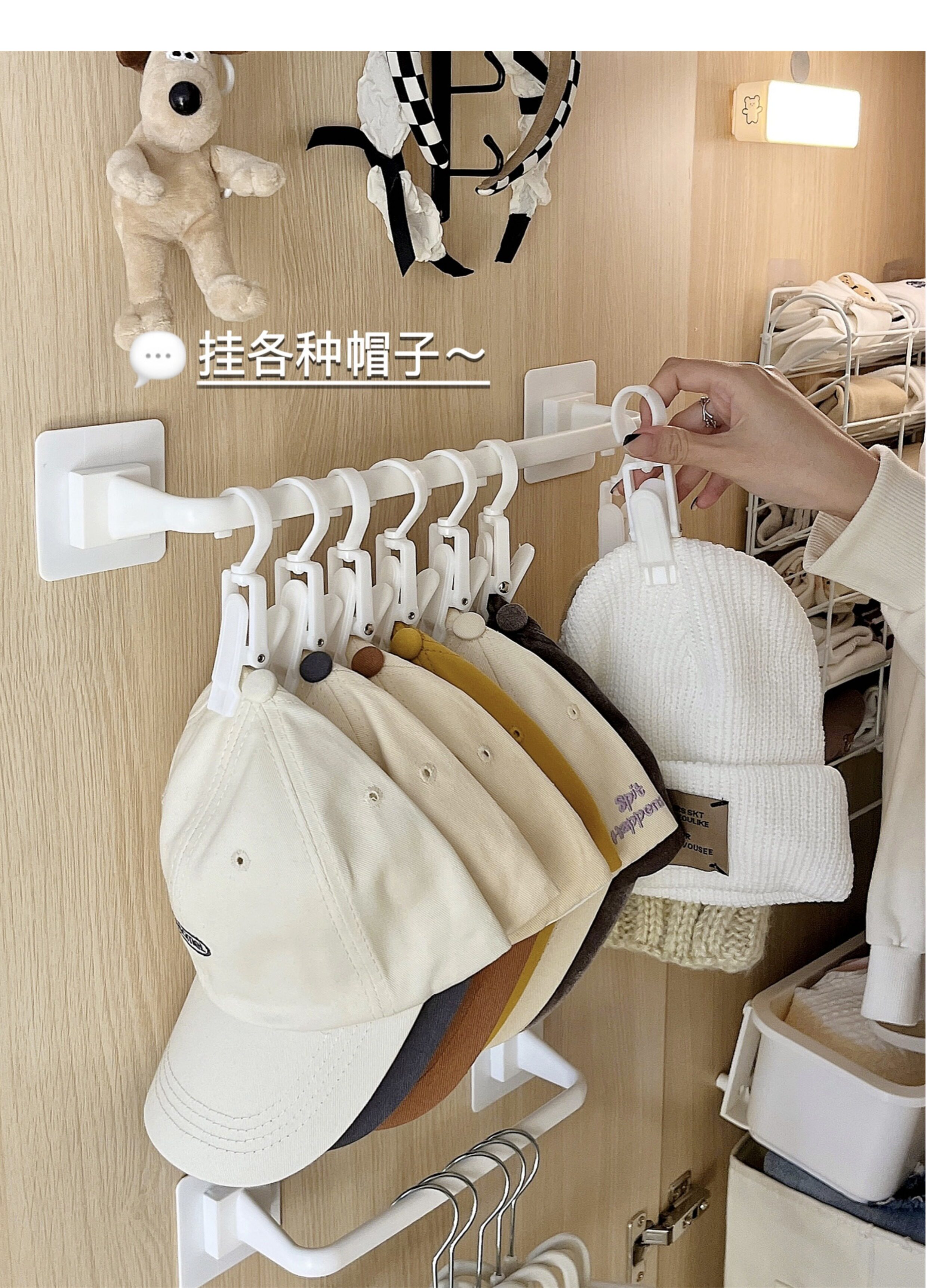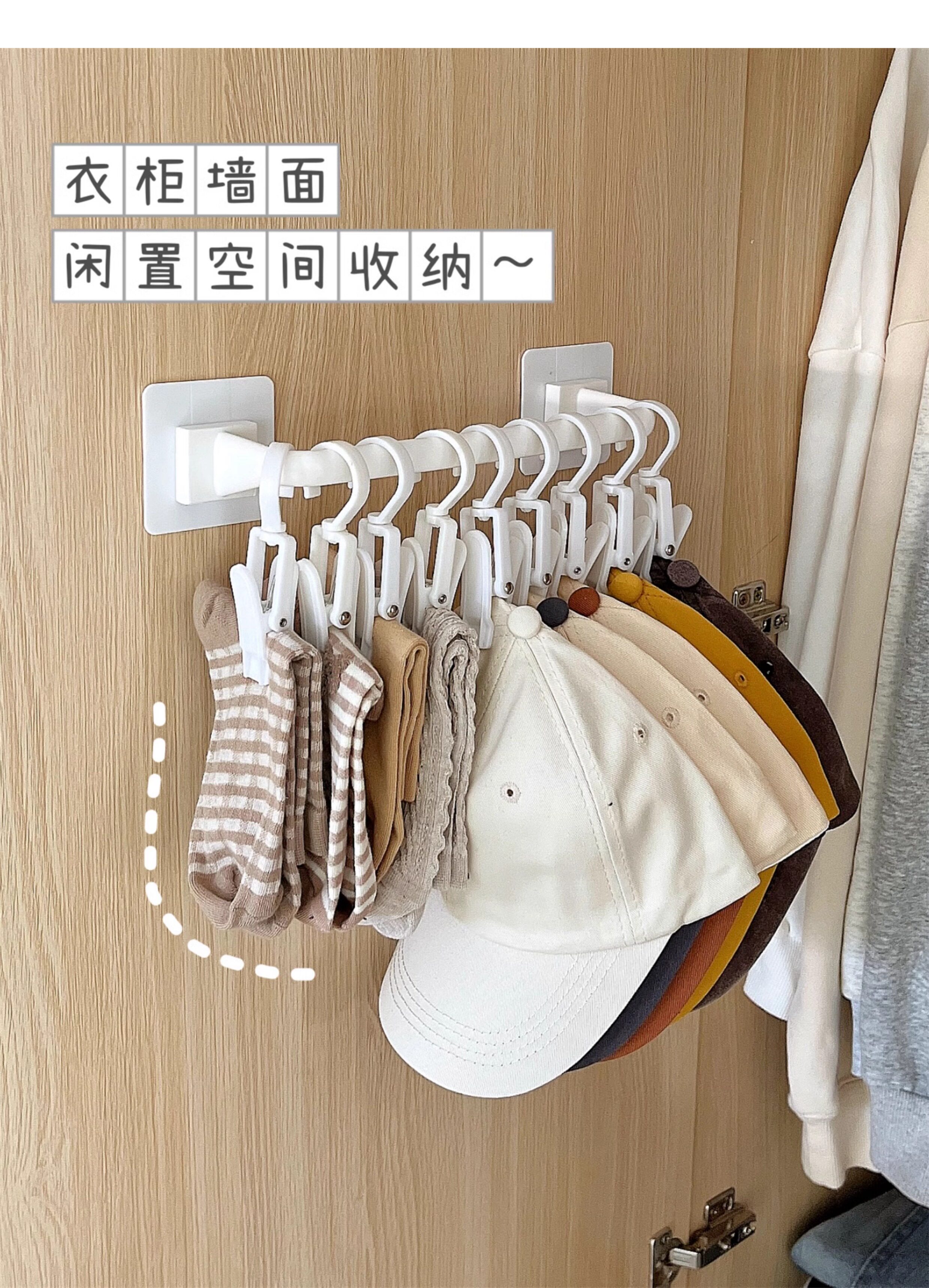 Шкаф шляп хранения демонов дверных дверных крючков и освобожденных отверстий висят висящие вешалки одежда общежития стены стены на стене стены