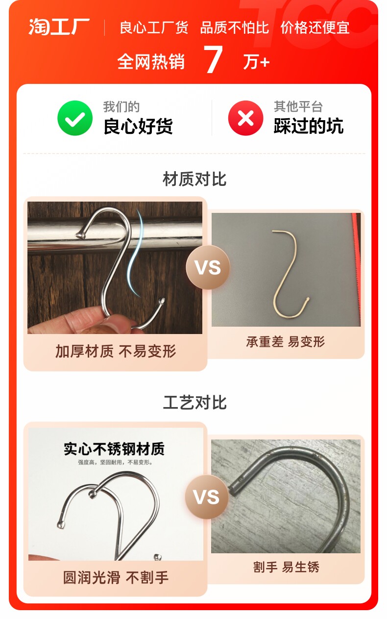 [s型挂钩加粗强力承重多功能宿舍挂钩挂腊肉钩公车挂钩s挂钩家用]