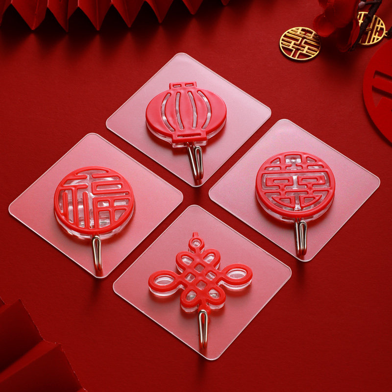Красная связь с крючком сильный клей китайский узел персонажей Свадебное свадебное персонаж счастливая крючка паста на стене бесплатно пунш без трассировки