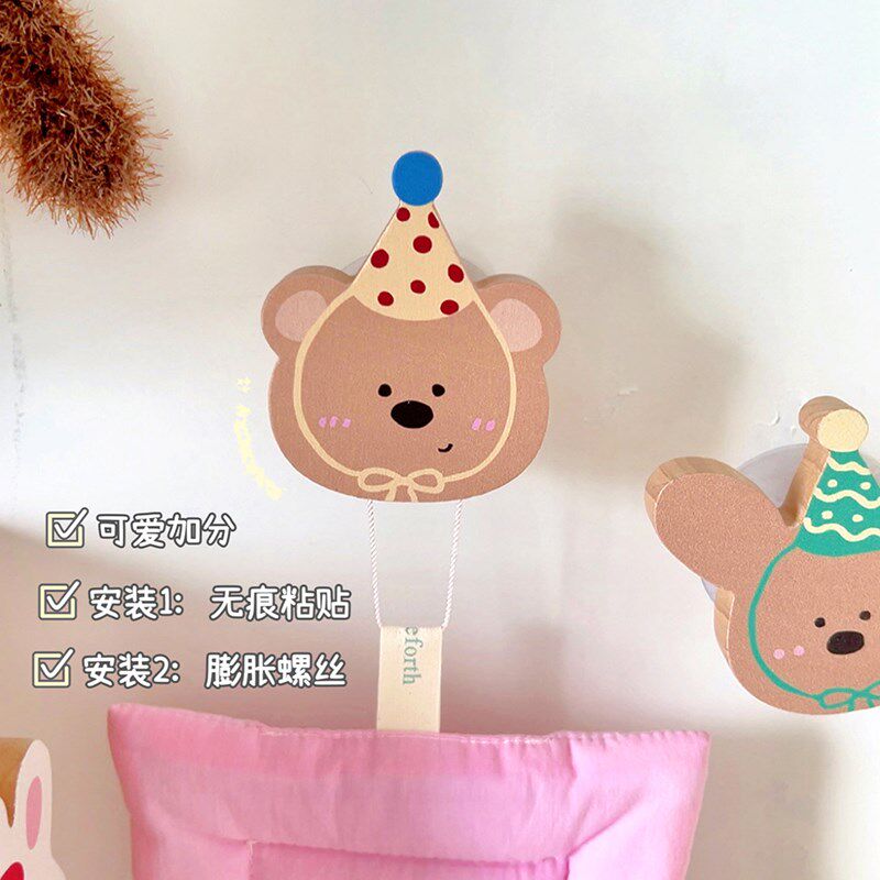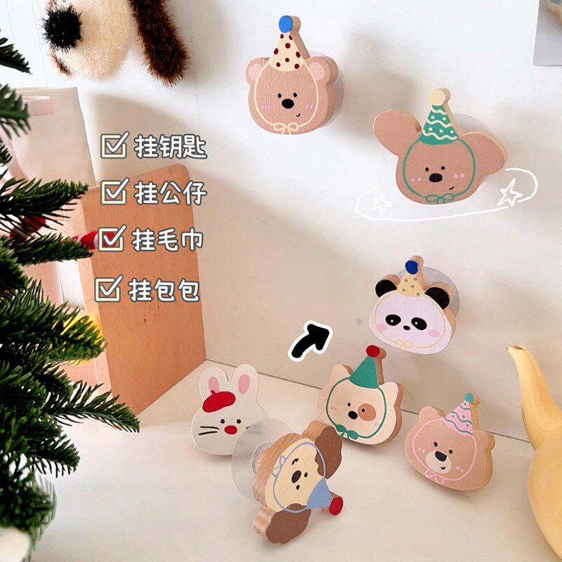 Быстро милый стильный крючок без перфорации из цельного дерева, двойное назначение, шляпа, липкий крючок, дверная задняя одежда, настенный крючок, подвесное украшение для детской комнаты