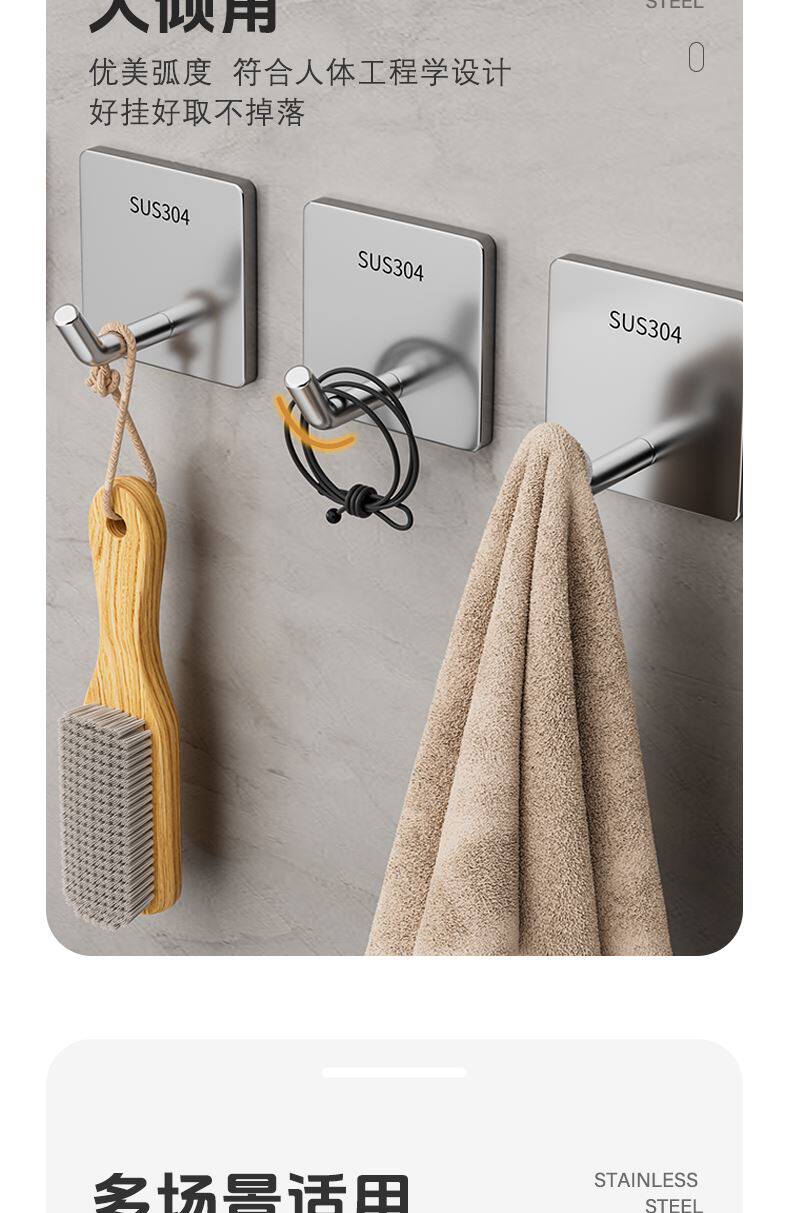 304 Крюк из нержавеющей стали Viscose Сильный несущий нагрузки и без отверстия кухня и утолщенное полотенце для ванной комнаты, установленное на стене крючка
