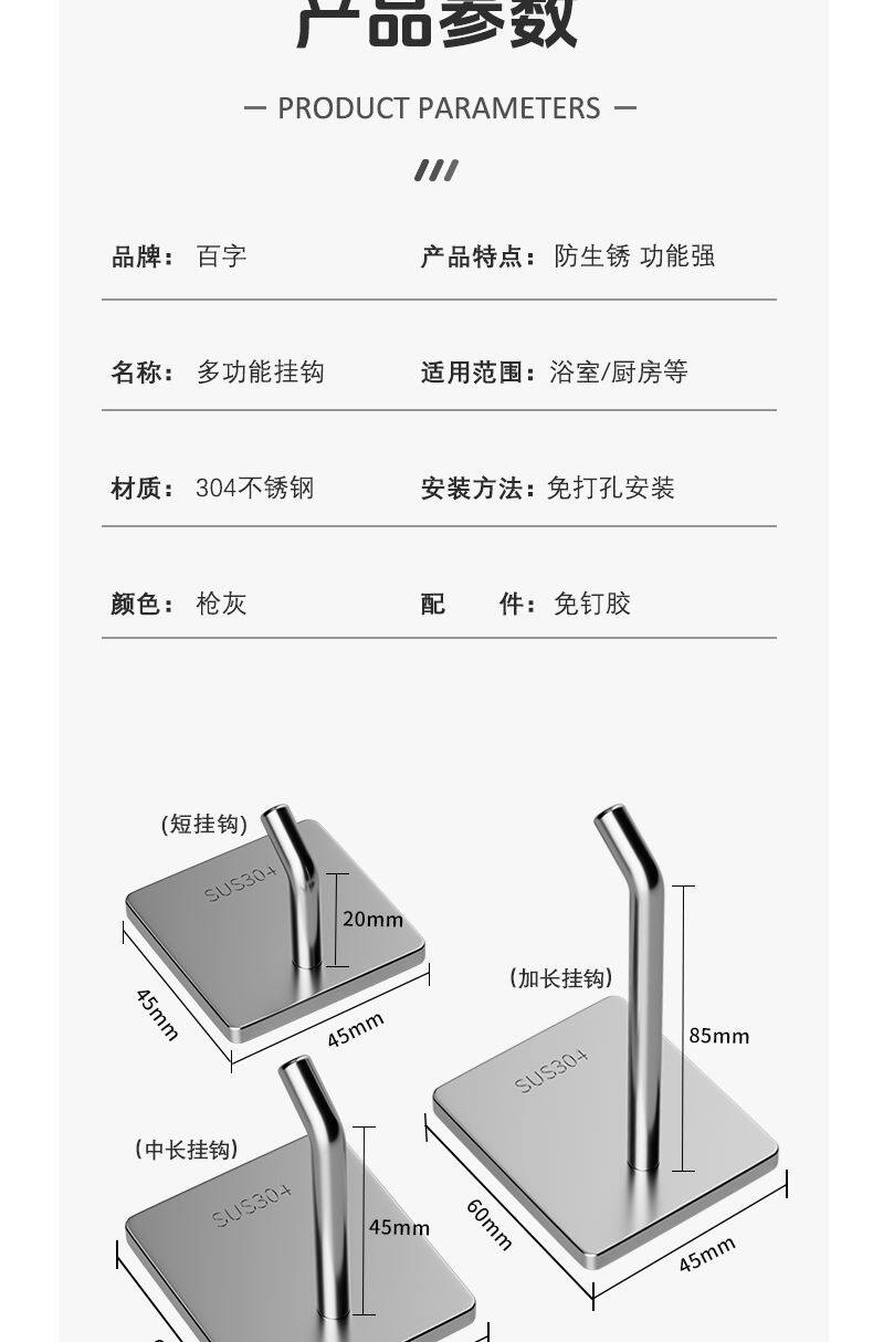 | Цвет: | Г-образный крючок из матового серебра (в комплект входит бесплатный клей для ногтей), нержавеющая сталь 304., Г-образный крючок, окрашенный в черный цвет (в комплект входит бесплатный клей для ногтей), нержавеющая сталь 304., Очень толстый J-образный крючок (в комплект входит бесплатный клей для ногтей), нержавеющая сталь 304. |